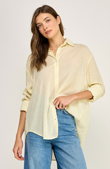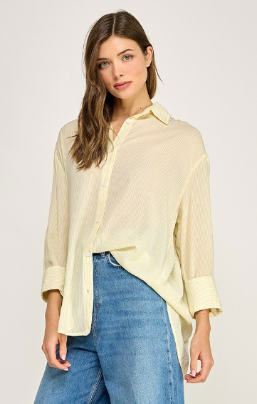 An effortlessly slouchy staple with timeless appeal, the Lucy Striped Top is designed to bring ease to everyday styling. Cut in a relaxed, oversized silhouette, this button-down features classic vertical stripes, a soft collared neckline, and a full button front. Lightweight with a lived-in drape, it’s perfect for throwing on with denim or layering year-round for that perfectly undone look.