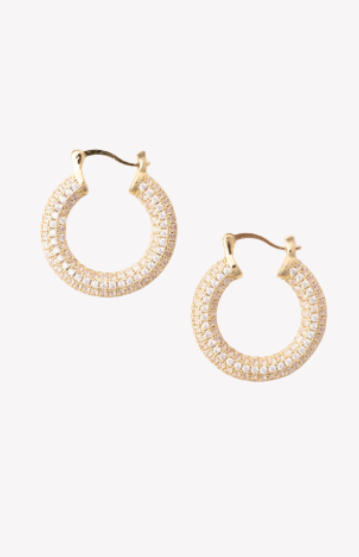 The Adrianna Earrings are the perfect blend of sparkle and sophistication. Designed in a classic hoop silhouette, these earrings feature rows of shimmering stones that catch the light from every angle, creating a radiant, eye-catching finish. Their timeless shape paired with elevated detailing makes them an effortless choice for both everyday glam and special occasions.