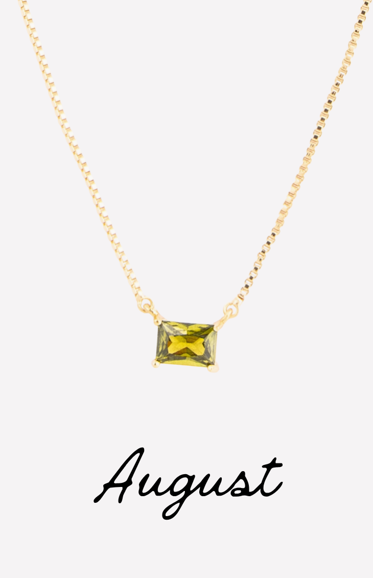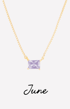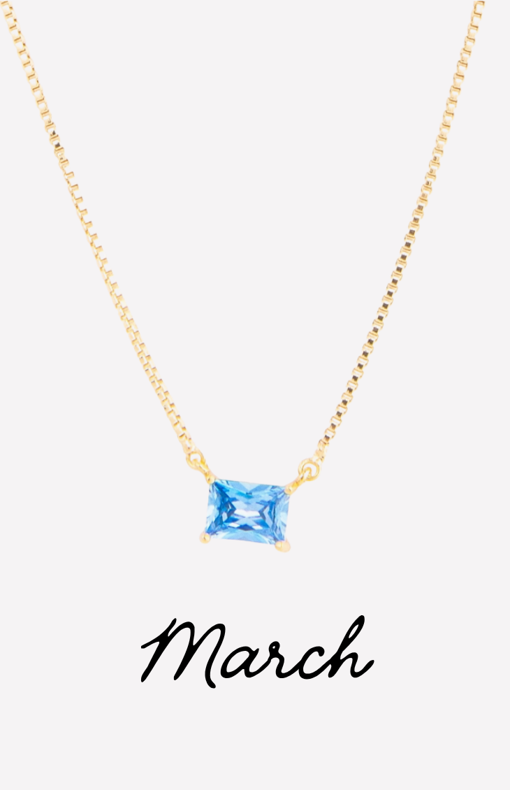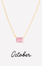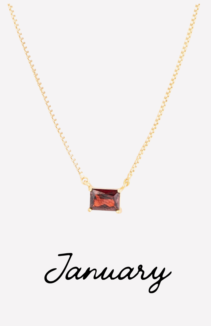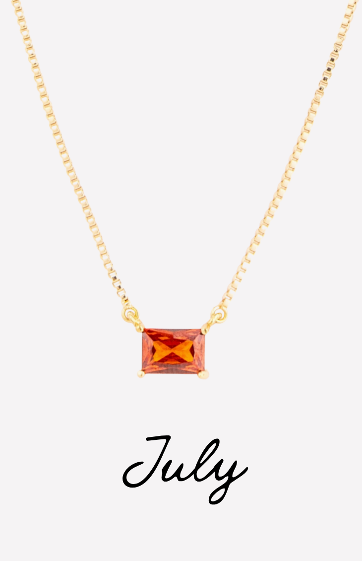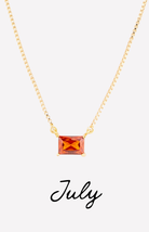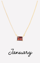 The Colby Necklace is a timeless, personalized piece designed to celebrate every month of the year. Featuring a sleek rectangular crystal pendant, each necklace is available in a vibrant birthstone-inspired color—from deep garnet hues to bright, sparkling blues.