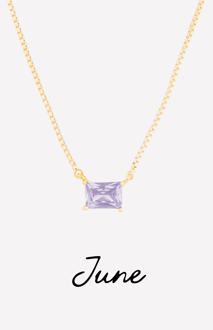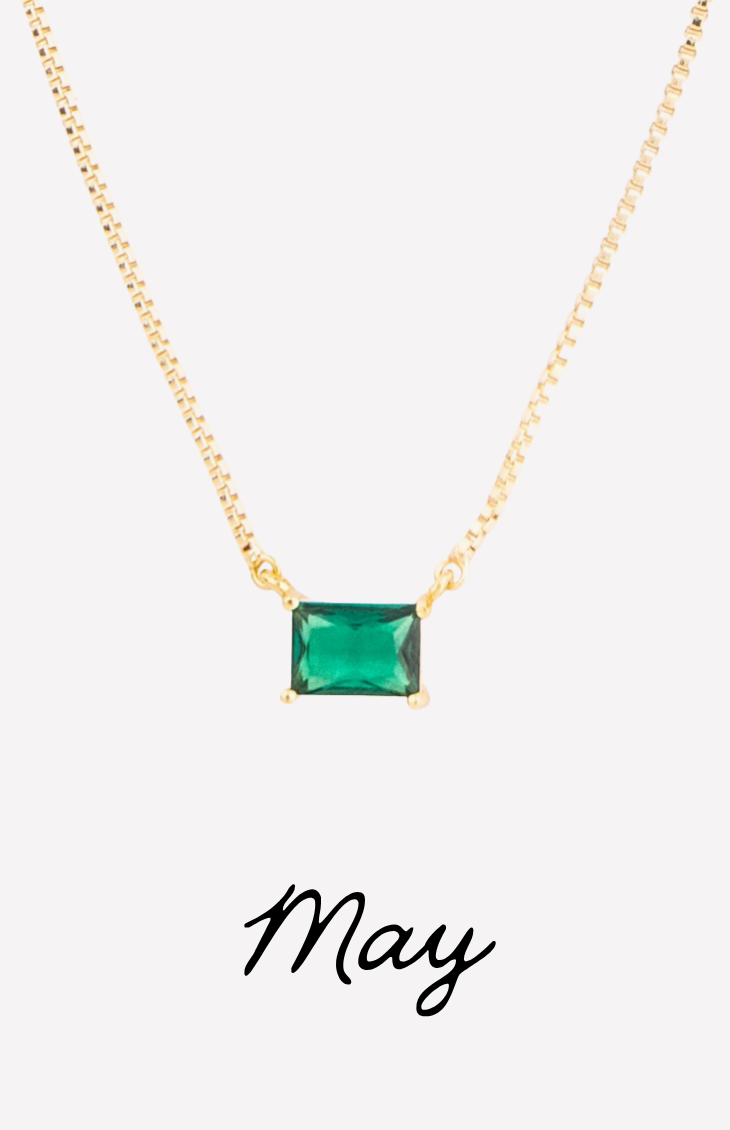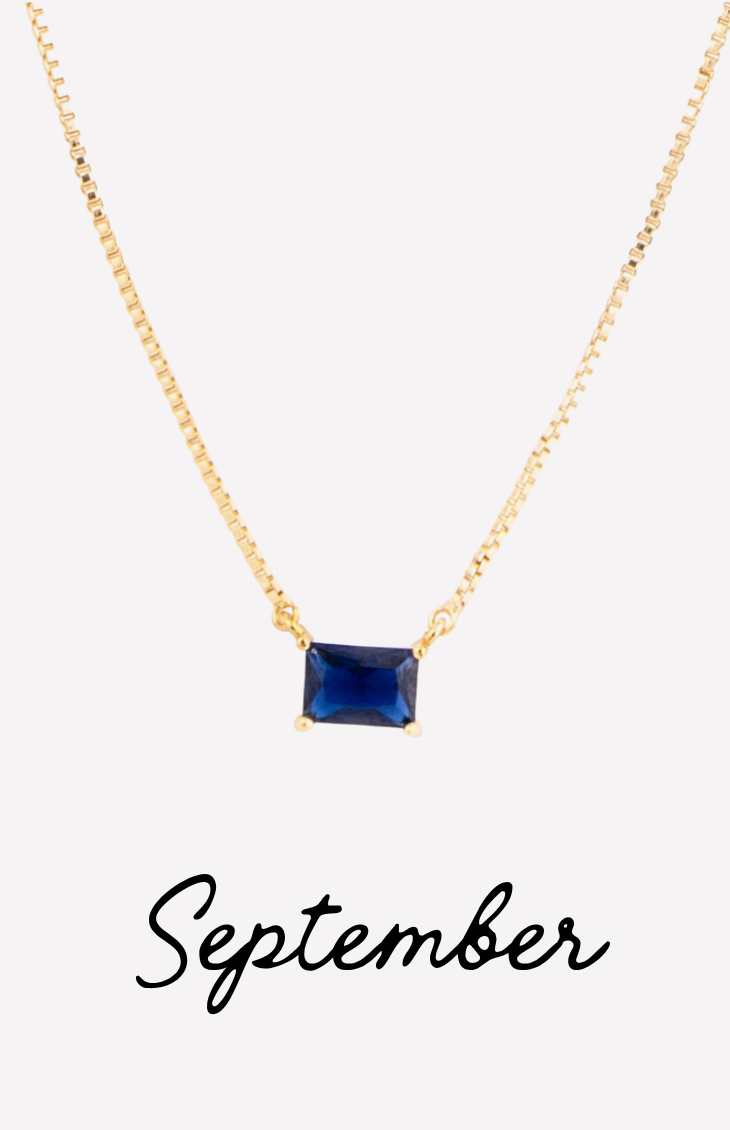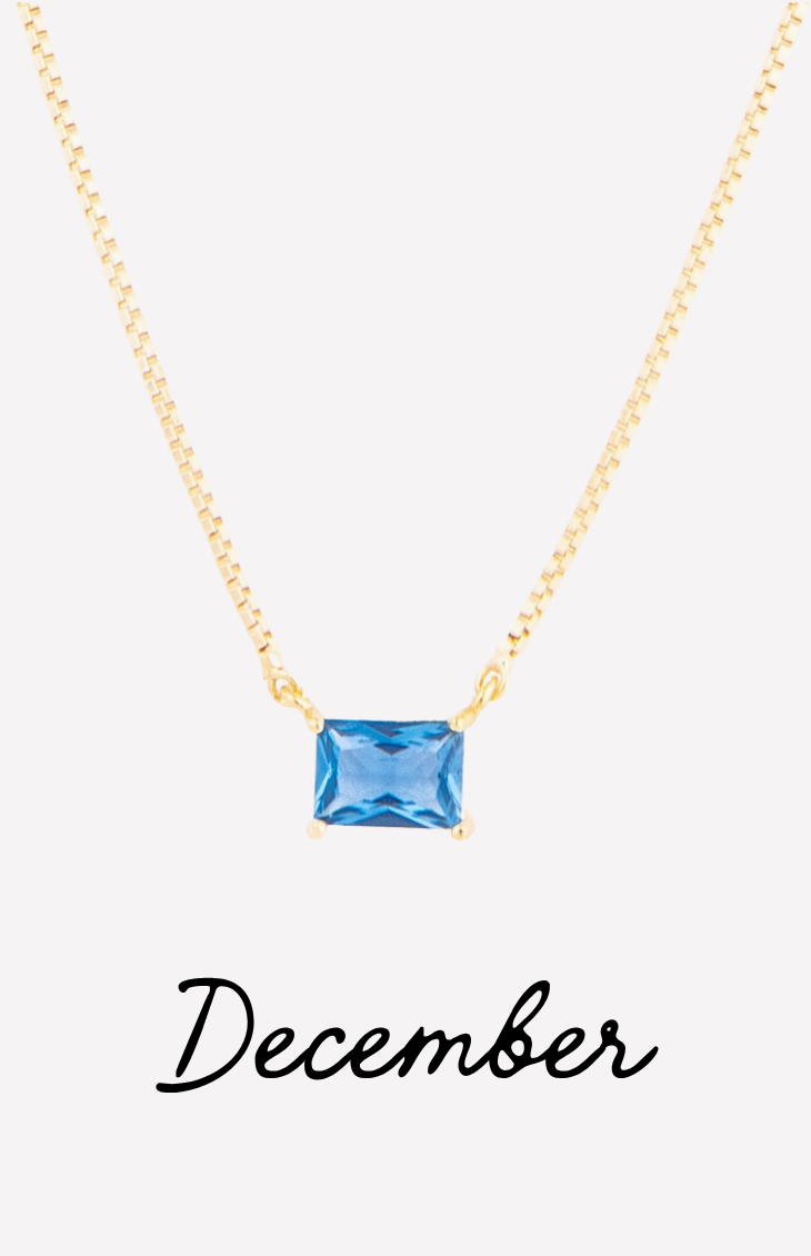 The Colby Necklace is a timeless, personalized piece designed to celebrate every month of the year. Featuring a sleek rectangular crystal pendant, each necklace is available in a vibrant birthstone-inspired color—from deep garnet hues to bright, sparkling blues.