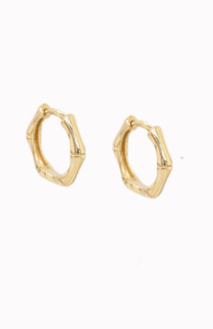 The Ivy Earrings bring a natural, textured twist to a classic hoop. Designed with a bamboo-inspired silhouette, these 18K gold plated earrings feature subtle ridged detailing that adds dimension and interest while keeping the look clean and minimal. Their timeless shape makes them easy to style, while the unique finish gives them a fresh, modern edge.