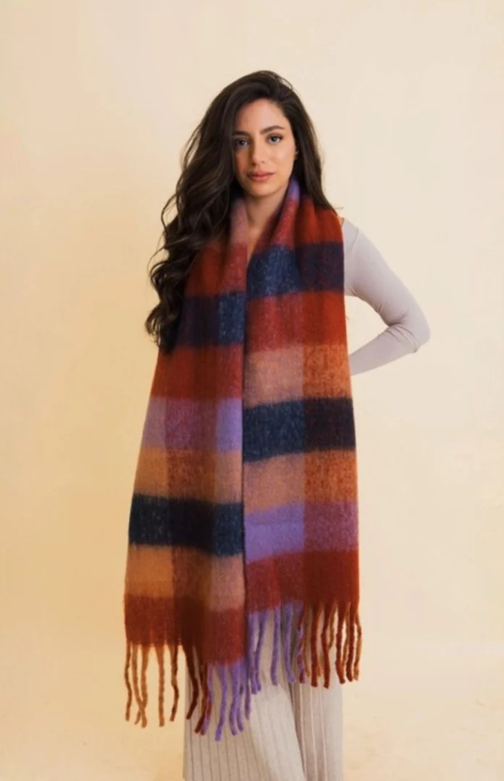 Wrap yourself in warmth and soft, airy comfort with the Cozy Breeze Fringe Scarf. Featuring a beautifully blended plaid design in light blue and red tones, this oversized scarf adds a pop of color and coziness to any cold-weather look. The plush, fuzzy texture and long fringe detailing make it the perfect finishing touch for effortless fall and winter styling.