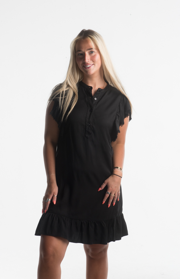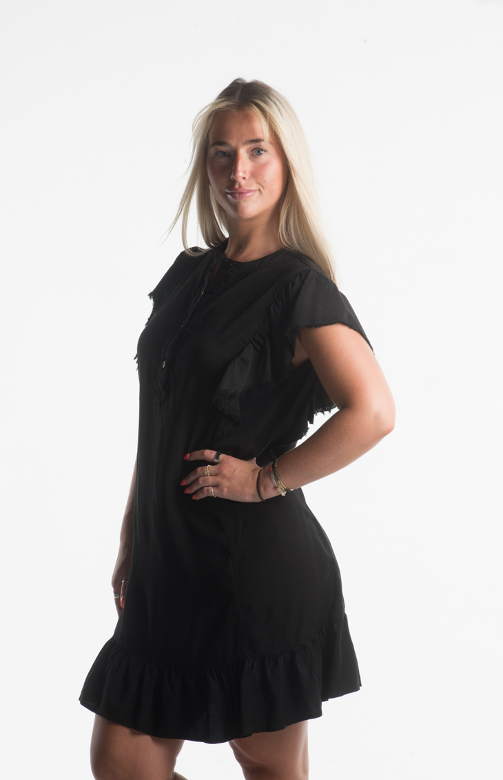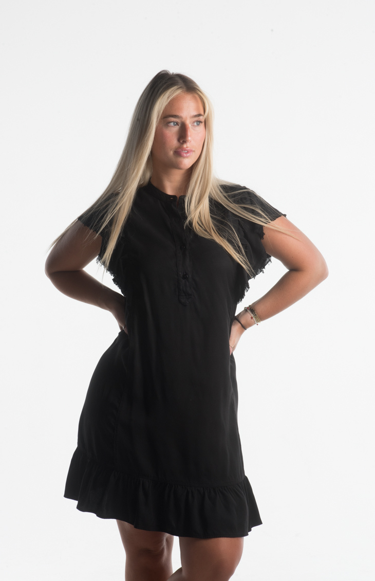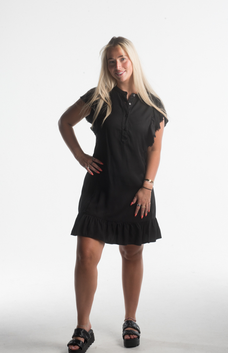 The Maven Whimsy Dress offers a playful yet elegant look. Its ruffled edges and v-neckline create a flattering silhouette, making it a must-have for any fashion-forward individual. Ideal for both casual and formal occasions, this dress provides a versatile option. Complete the look with statement earrings and ankle boots.