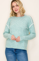 Meet your new winter favorite: the Mistletoe Mist Sweater. This ultra–soft, cozy pullover features a classic crew neckline and long sleeves, elevated by a subtle contrast accent along the shoulders for a touch of modern charm. Its plush feel and relaxed fit make it perfect for everyday wear—ideal for pairing with denim, layering under coats, or curling up fireside.