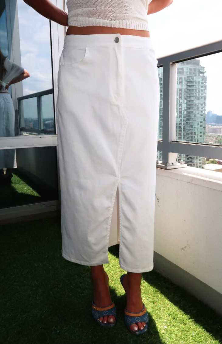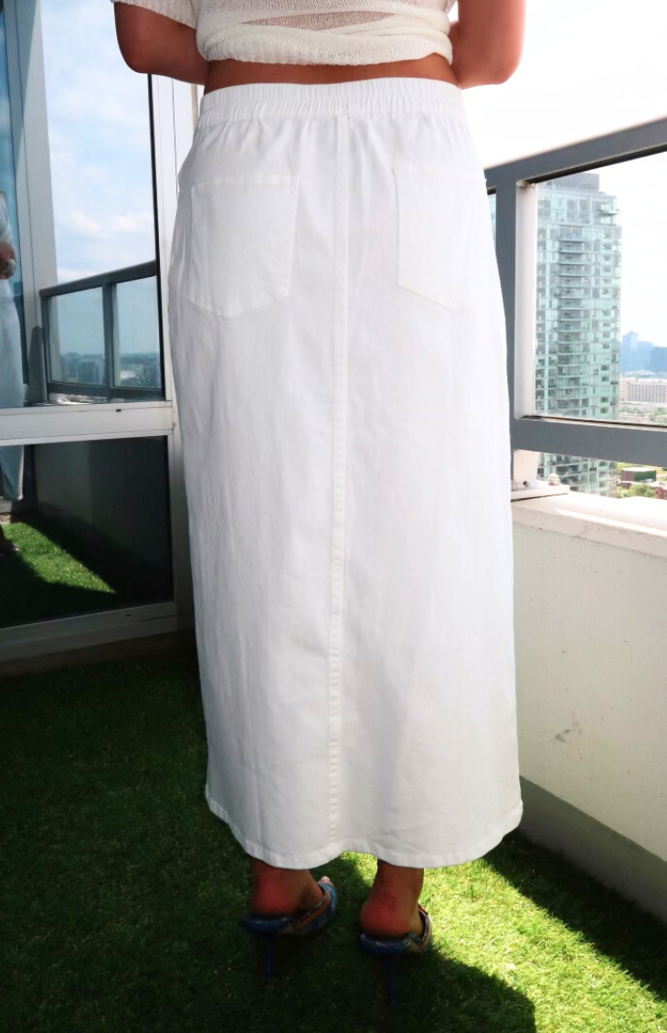 Slip into effortless style with our Nightlife Maxi Skirt. This chic white denim skirt features a stretchy waistband for ultimate comfort, ensuring it hugs you just right. Perfect for any occasion, pair it with your favorite tops for a versatile, sophisticated look that’s ready for anything.