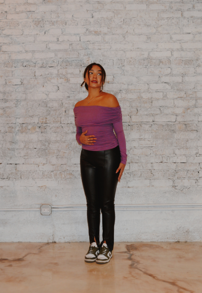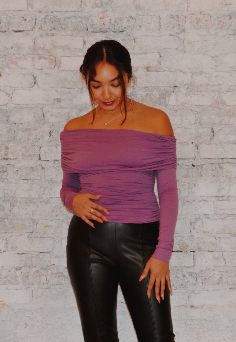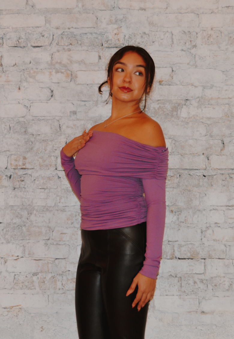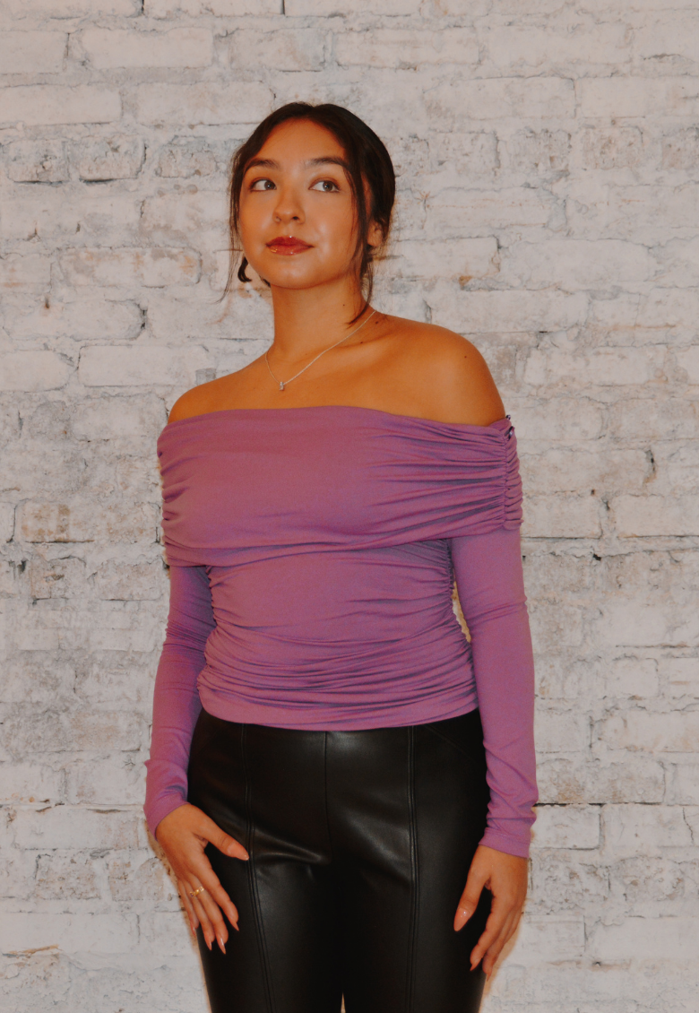 The Susana Monaco Andie Top is the epitome of chic sophistication. Elevate your style with this off-the-shoulder top that boasts long sleeves and a draping effect with ruching, creating a unique and effortlessly fashionable look. Whether you're headed to a night out with friends or a special event, this top is sure to make a statement and turn heads. Its attention to detail and comfortable fit make it a must-have addition to your wardrobe.