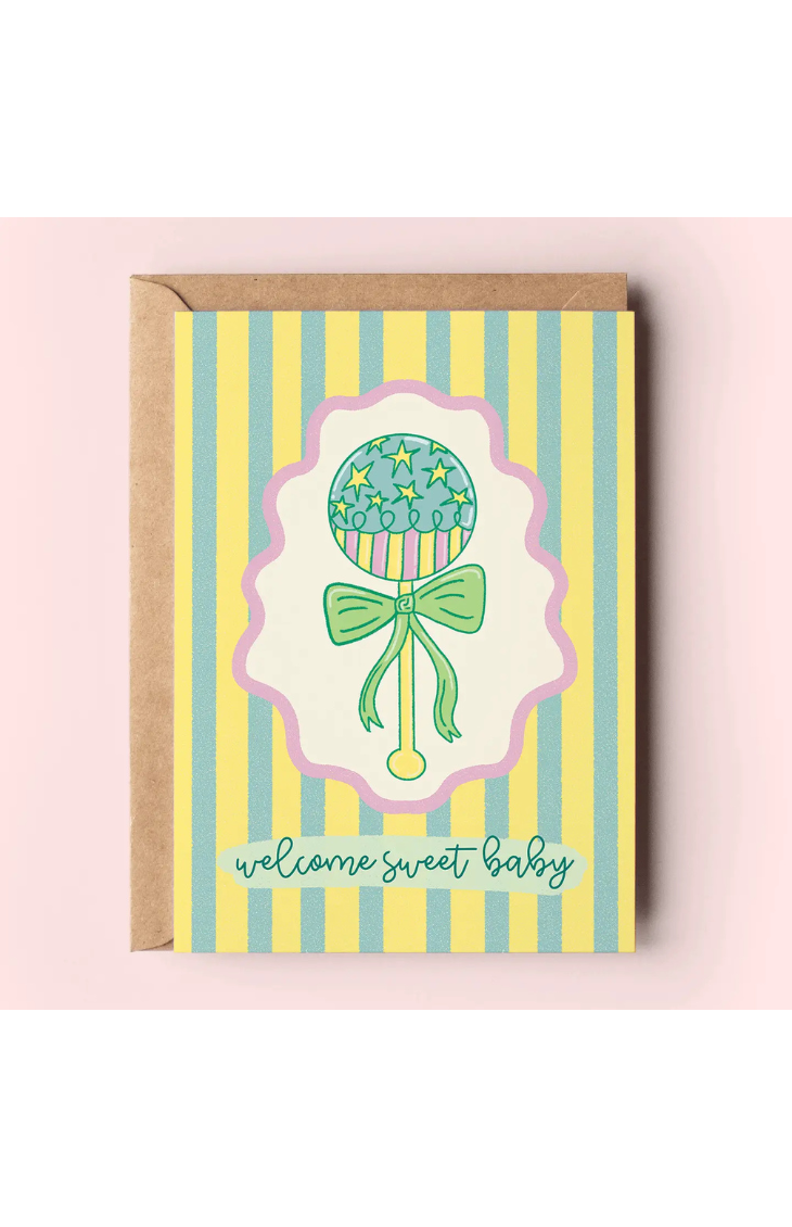 Welcome Sweet Baby Colorful Rattle New Baby Greeting Card