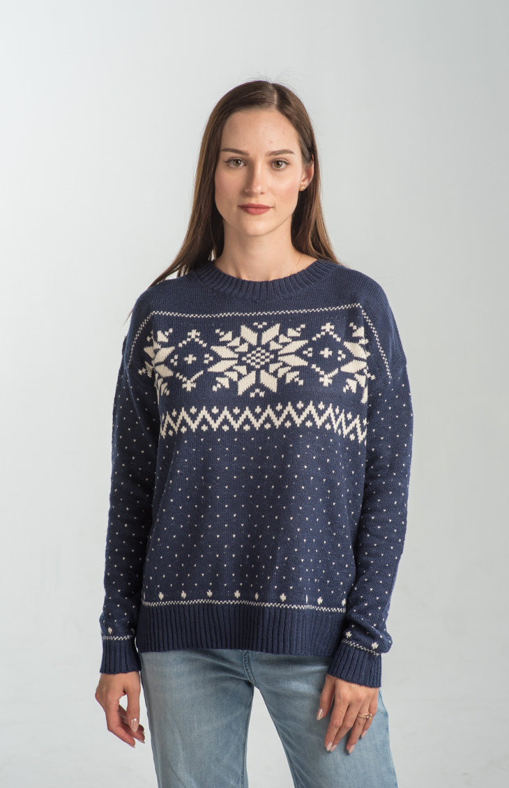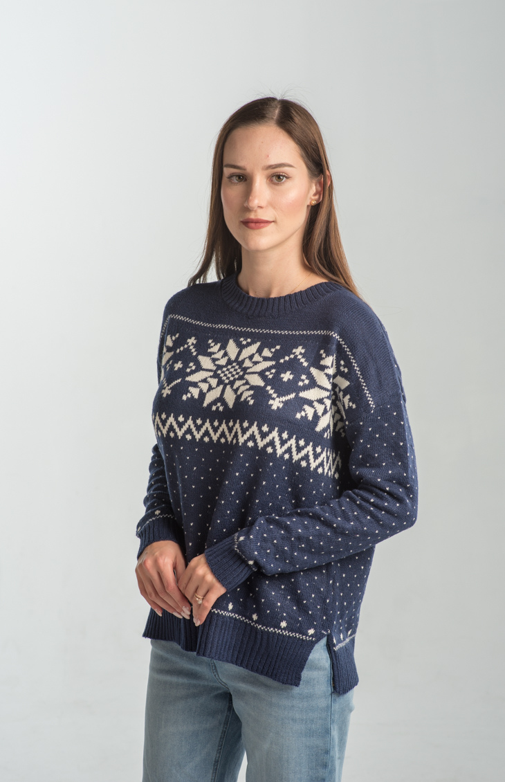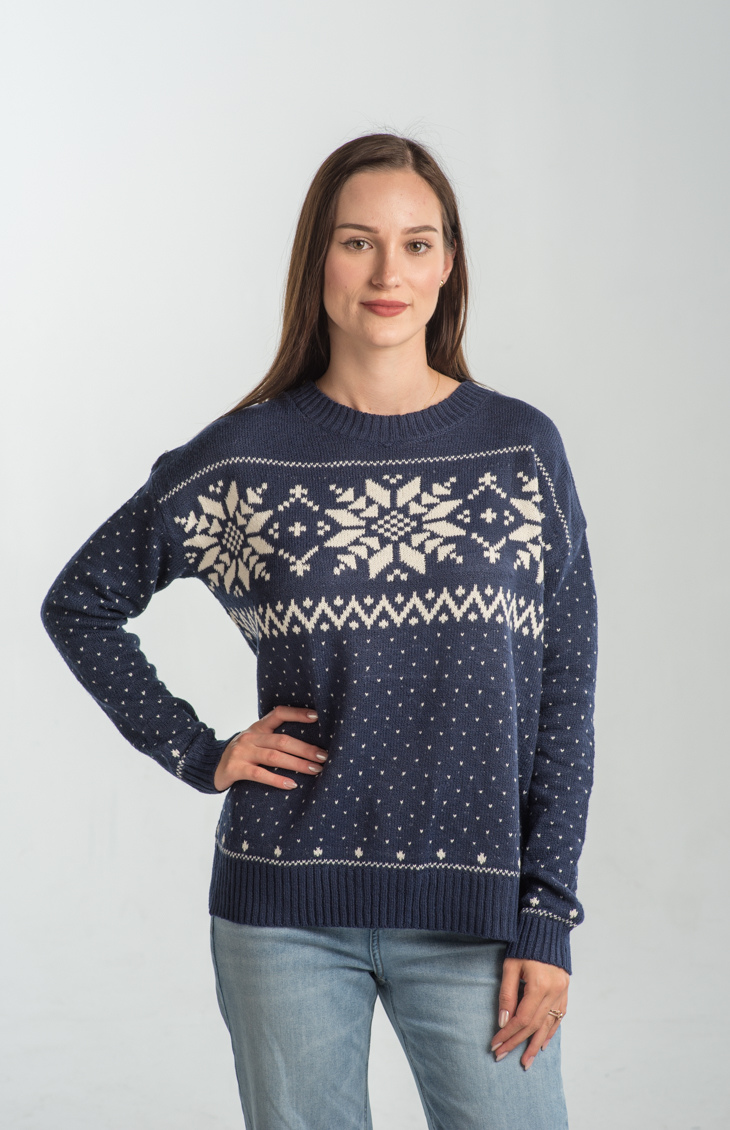 Embrace the charm of the season with the Winter Wonderland Pullover Sweater. Featuring a delicate snowflake-inspired design and cozy knit texture, this sweater is perfect for casual outings or relaxing indoors. Its classic silhouette and soft fabric provide both style and comfort, making it a versatile addition to your wardrobe.