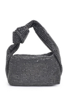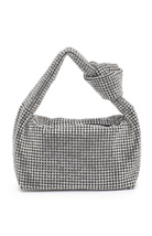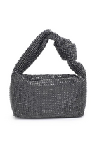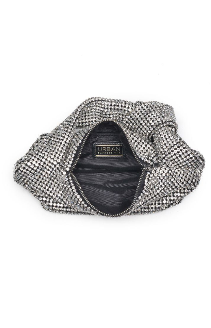 Made with high-quality rhinestones, this bag features an all-over rhinestone design and knotted handle detail for a touch of glamour. The silver hardware and zipper closure add an extra touch of luxury, while the compact size makes it perfect for carrying your essentials.
