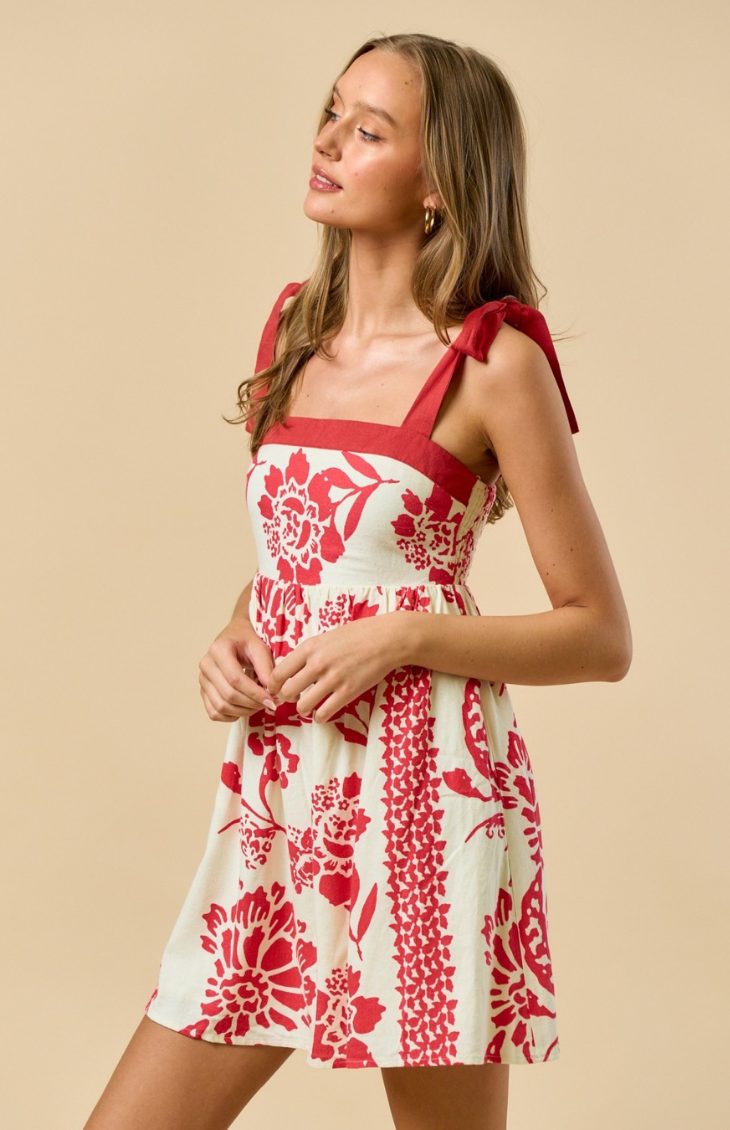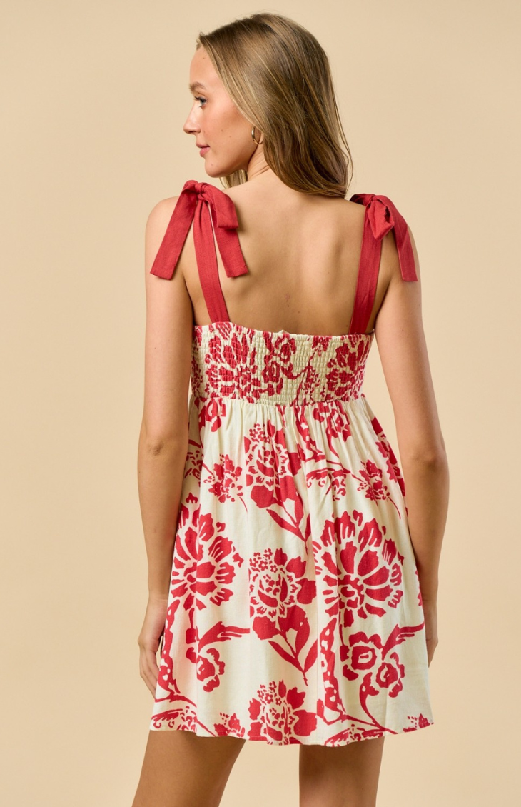 The Amalfi Glow Mini Dress is sunshine in outfit form. With a vibrant orange floral print on an off-white backdrop, this flirty mini features a square neckline, tie-up shoulder straps, and a gathered waist for a breezy, flattering fit. Perfect for warm days and spontaneous getaways, it’s a charming blend of relaxed and refined.