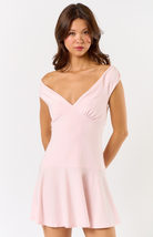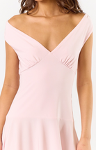 Sweet with a touch of allure, the Azure Bloom Mini Dress is your flirty go-to for any occasion. Designed in a soft ballet pink, it features a flattering off-the-shoulder neckline, ruched bodice, and flared skirt that moves with you. The open back adds an unexpected charm, making it perfect for date nights, parties, or warm evenings out.