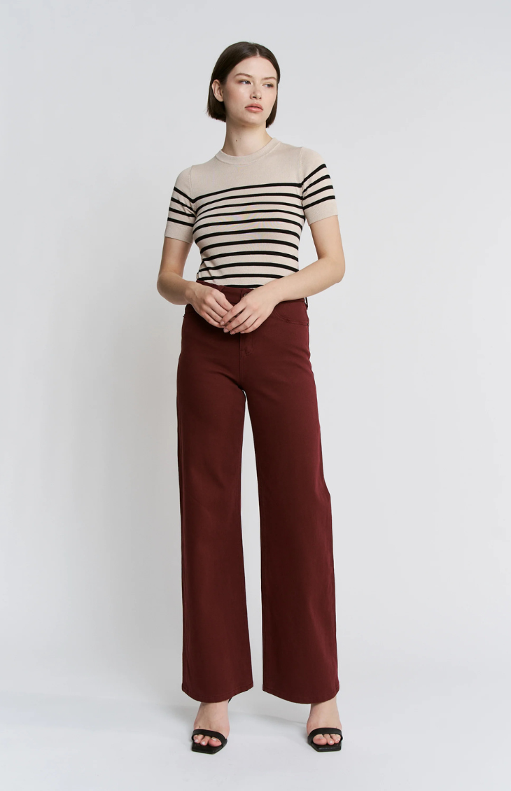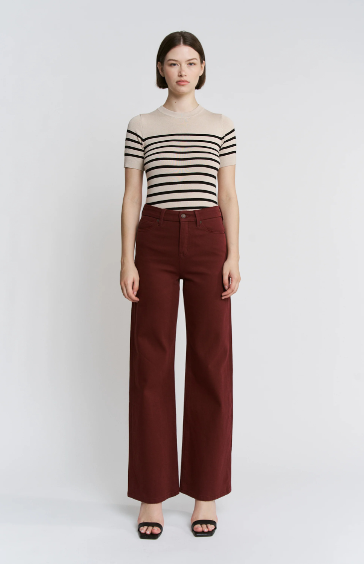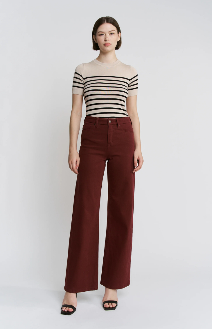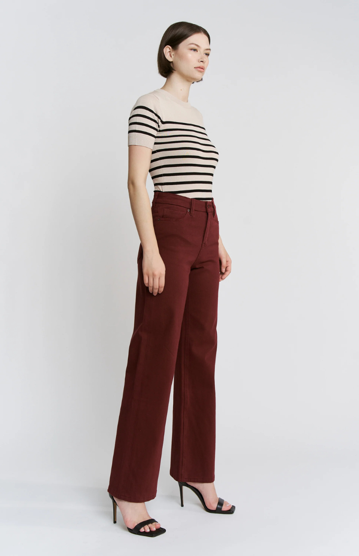 Elevate your everyday style with the Beckie High Rise Wide Leg. Crafted in a rich, standout hue, this pair offers a sleek, elongating silhouette with a modern wide-leg shape. The high-rise fit provides a flattering hold through the waist, while the soft stretch fabric ensures all-day comfort. Clean lines and a polished finish make these jeans easy to dress up or down for any occasion.
