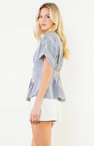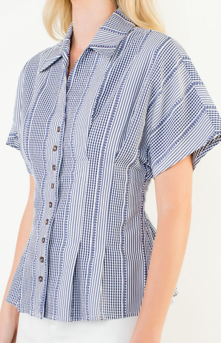 Fresh, playful, and perfectly versatile, the Brisa Top brings a polished yet easygoing feel to your everyday lineup. Featuring a button-up front, short sleeves, and a flattering structured silhouette, this woven top showcases a striped gingham pattern for a timeless look with a modern twist. Lightweight and breathable, it’s ideal for styling solo or layering through the seasons.