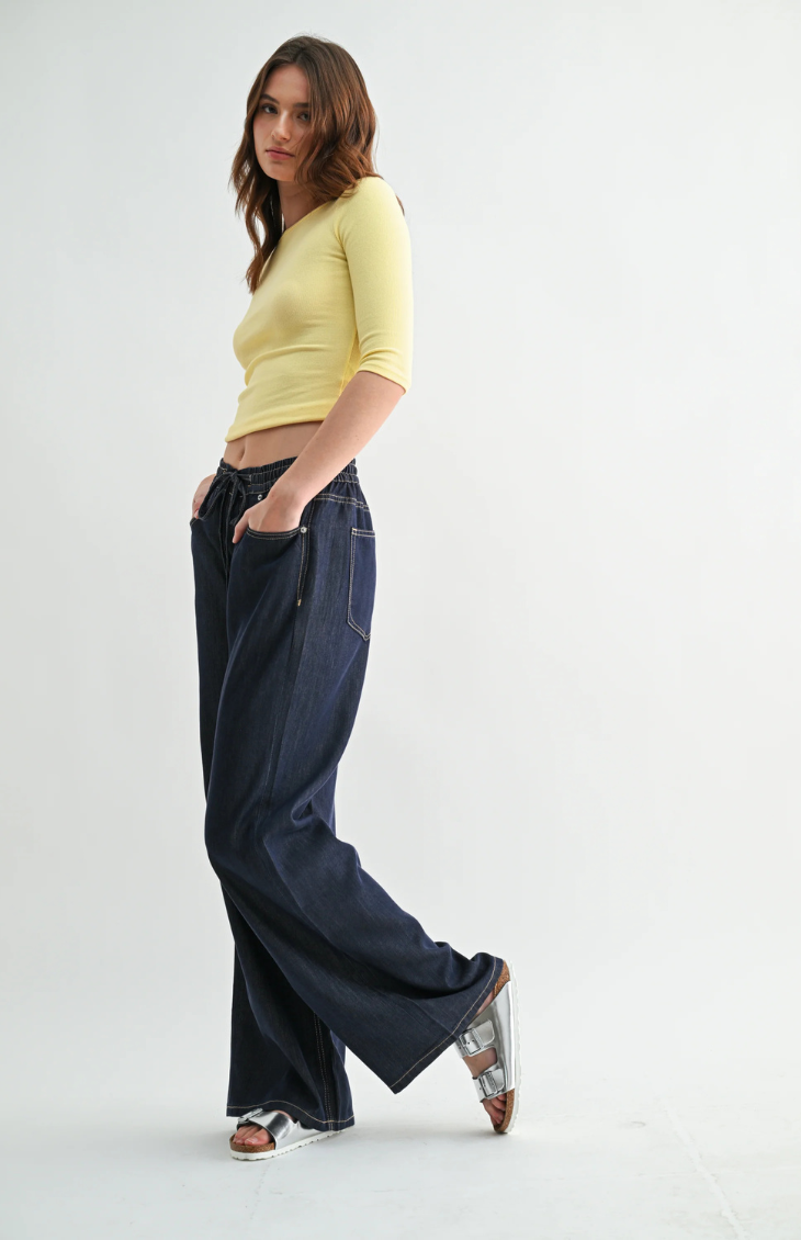 Effortless comfort meets elevated style with the Florence HR Wide Leg Jogger. Designed with a flattering high-rise waist and a relaxed wide-leg silhouette, this jogger features a soft elastic waistband with an adjustable drawstring for an easy, pull-on fit. Crafted from a lightweight lyocell blend, it drapes beautifully while keeping things breathable and polished—perfect for casual days that still call for style.