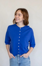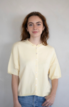 The Jess Knit Cardigan Short Sleeve is a half-sleeve version of our best-selling cardigan from Things Between. Its soft, lightweight fabric is uniquely cozy and easy to wear, and its dainty white buttons make it easy to match with anything. Its unfinished collar is a special touch, contrasting with the ribbed hem on the bottom and sleeves. Pair with denim bottoms or a white skirt all summer long to work, coffee dates, and shopping trips.Β