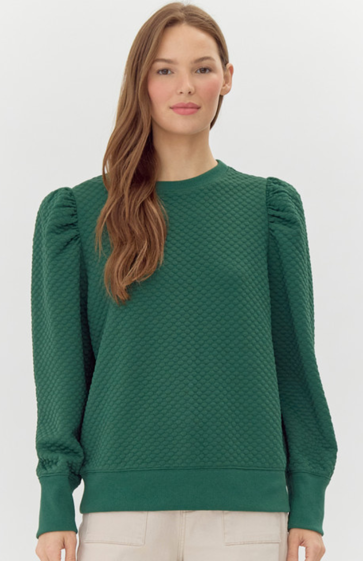 Elevate your casual wardrobe with the Light Layers Top. A modern take on a sweatshirt, the top features a slight puff long sleeve and a quilted textured fabric. Pair with jeans and your favorite sneaker for running errands, getting coffee, or any casual outings.