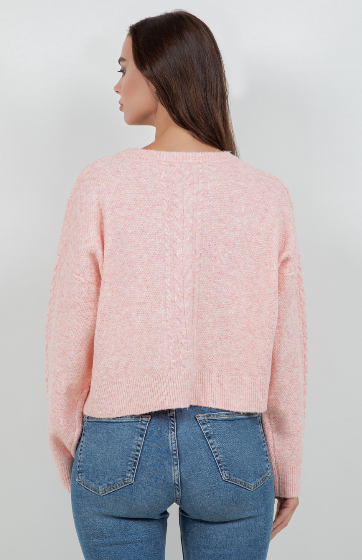 Sweet, cozy, and effortlessly charming, the Lovely Knit Cardigan is a timeless layer with thoughtful details. Featuring a classic diamond cable knit pattern and delicate heart-shaped buttons down the front, this cardigan brings a romantic touch to everyday styling. Designed with a slightly cropped fit, ribbed trim, and long sleeves, it’s perfect for pairing with high-rise denim or skirts for a polished yet cozy look.