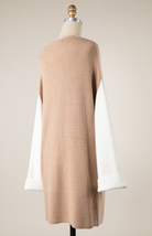 Add a soft, modern touch to your wardrobe with the Peachy Shrug. This color block long-body cardigan features a cozy cable knit texture and front patched pockets for effortless charm. Its open-front design and relaxed fit make it a perfect layering piece for transitional seasons or lounging in style.