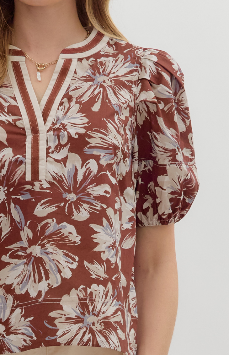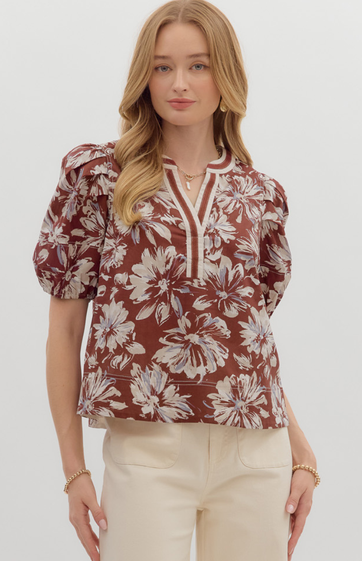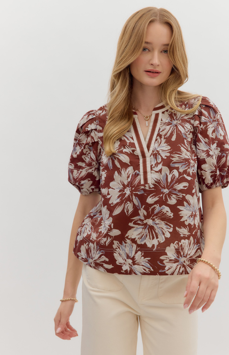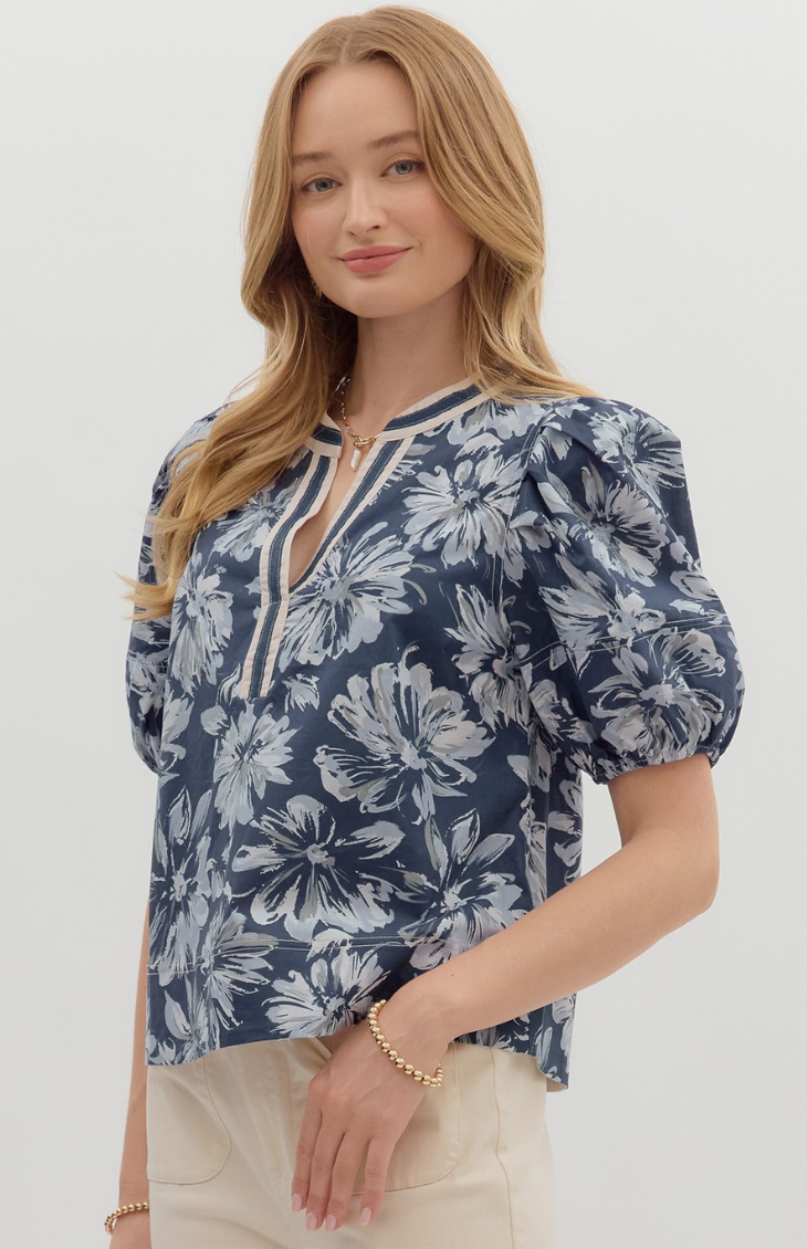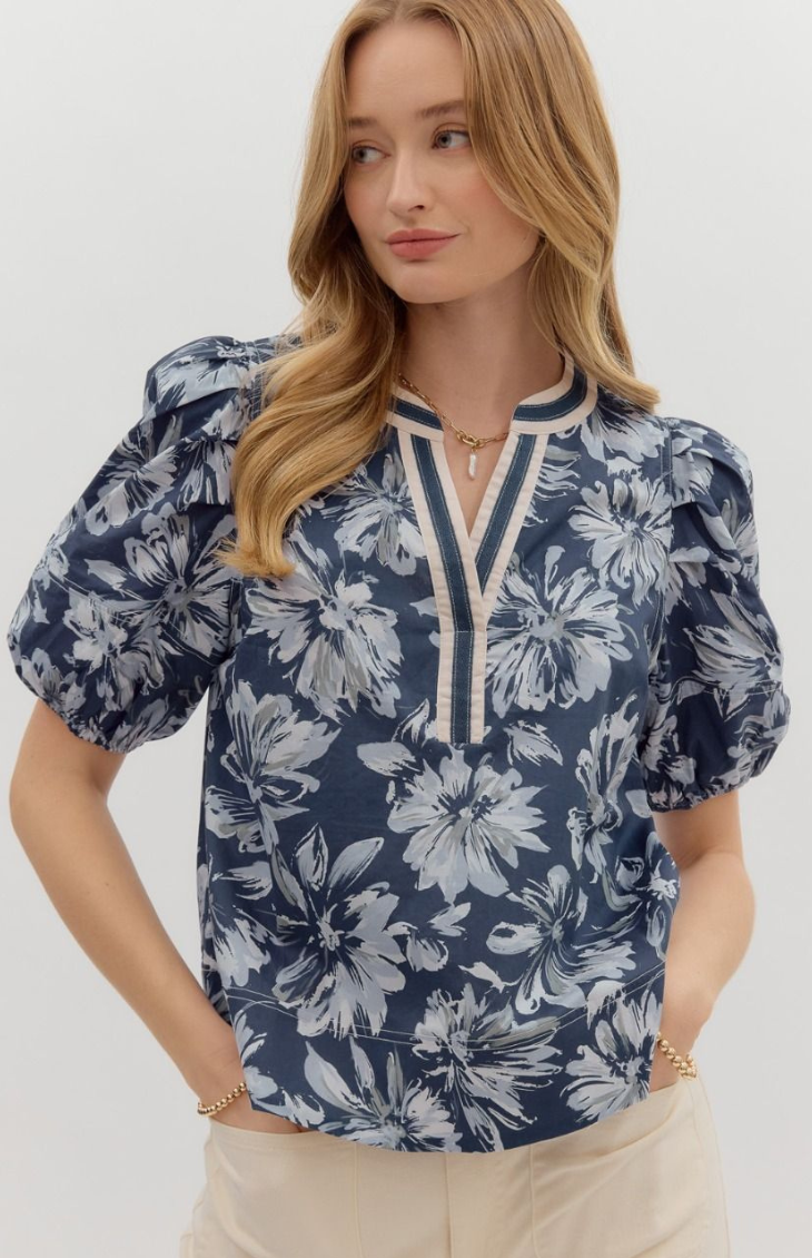 The So Sick of Dreaming Top brings a fresh take on florals with its large-scale blossom print. The puff sleeves add a touch of volume and femininity, while the split neckline is framed by contrasting ivory trim for a crisp, tailored finish. Lightweight and breathable, this cotton blouse easily transitions from weekday meetings to weekend brunches.