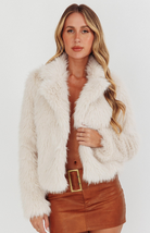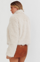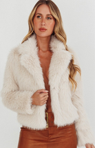 The Sunlit Reverie Jacket is your go-to elevated layer for winter elegance. Featuring an ultra-soft faux fur texture, this slightly cropped design adds a glamorous and flattering touch to any outfit. Pair it with your favorite dress or going-out look for fun and timeless fall/winter style.