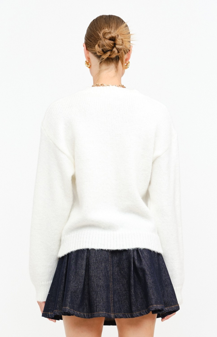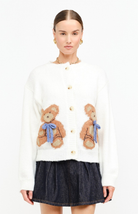 Wrap yourself in cozy charm with the Teddie Cardigan. This playful knit features an adorable teddy bear motif accented with 3D bow details for a nostalgic, feel-good touch. Designed with a relaxed fit, dropped shoulders, and a classic button-front closure, it’s the perfect layer for adding a little whimsy to your everyday look.
