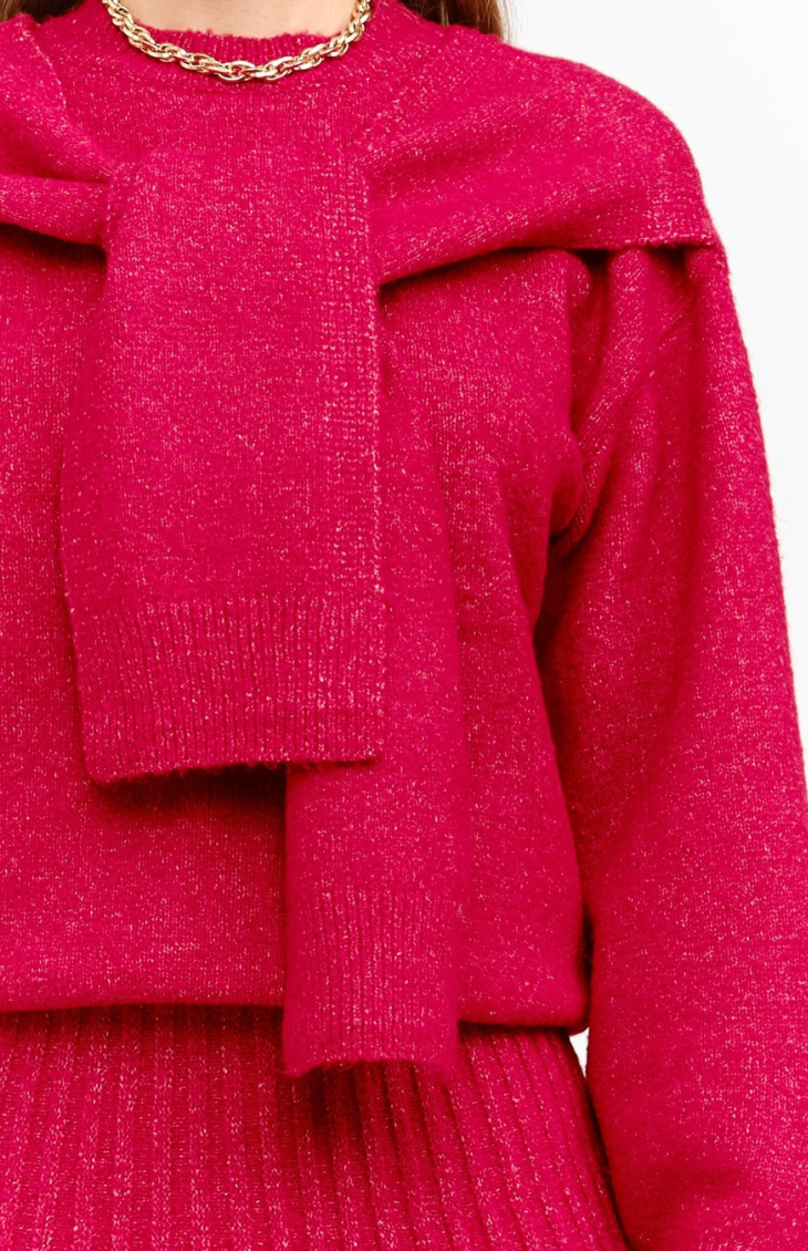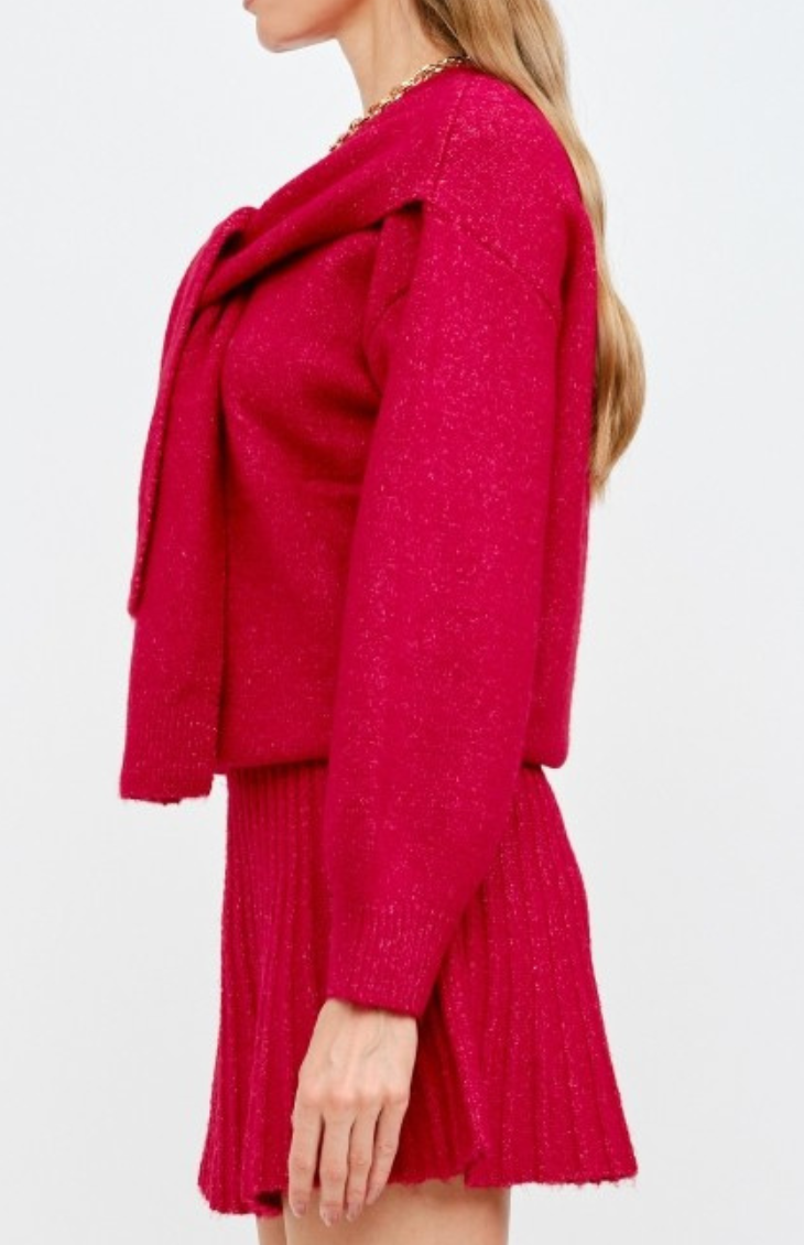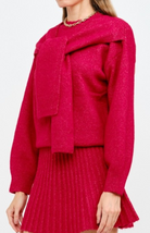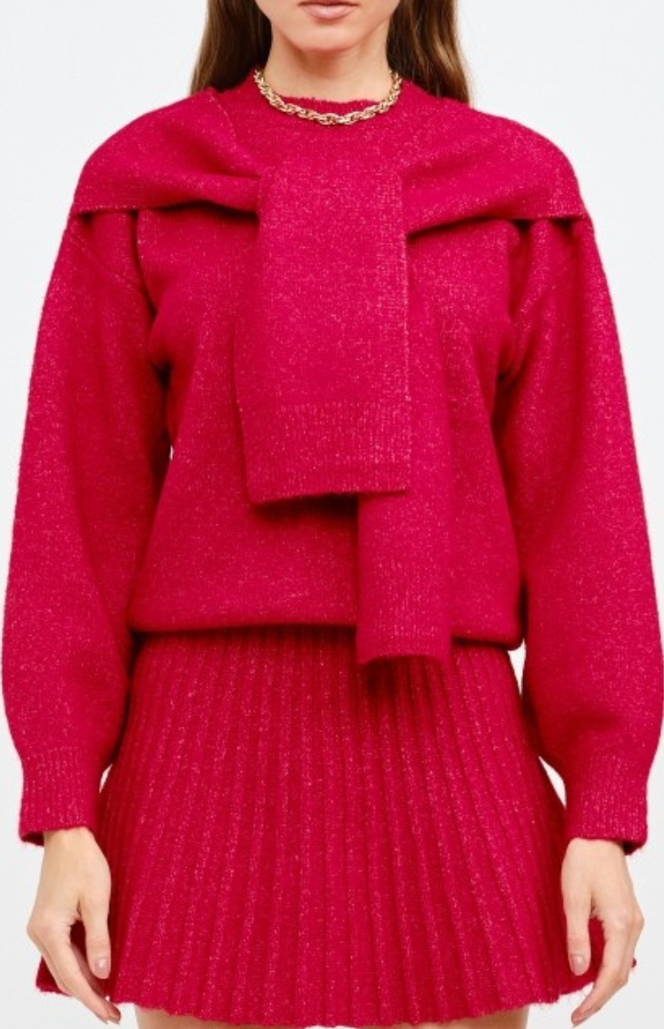 The Webster Sweater is a unique and modern knitwear piece to add to your rotation. This pullover sweater has extra strips of cozy fabric attached for you to wrap around yourself and tie to mimic another sweater draped over your shoulders. This innovative silhouette is trending this fall. Pair with your favorite jeans and boots for coffee dates, going to class, or chilly-weather strolls.
