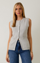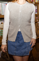 The Wilmington Sweater Vest is a timeless layering essential for your fall wardrobe. Made in a soft heather grey knit, it features a sleeveless silhouette with a classic crew neckline, button-front closure, and ribbed trim for a polished finish. Functional front pockets add a practical touch, while the slightly relaxed fit makes it versatile for styling on its own or layered over blouses and tees. Effortlessly chic, this vest transitions seamlessly from workday sophistication to casual weekend looks.