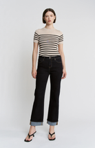 Meet your new everyday favorite β the Sophia Mid Rise Cuffed Ankle Straight. Designed with a flattering mid rise and a clean straight-leg silhouette, these jeans feature a stylish cuffed hem that can be worn folded or unfolded for versatile looks. The dark wash and subtle contrast stitching make them easy to dress up or down for any occasion.