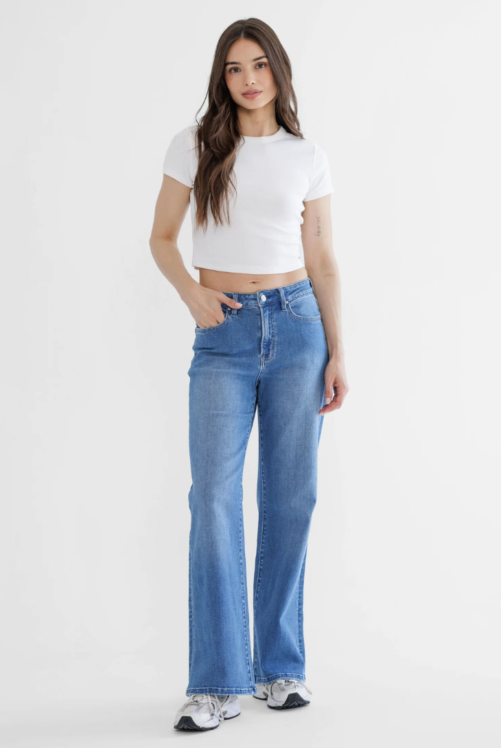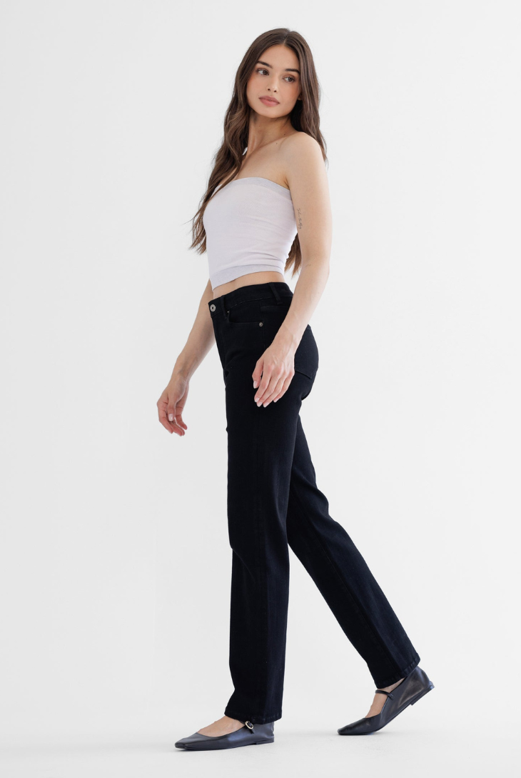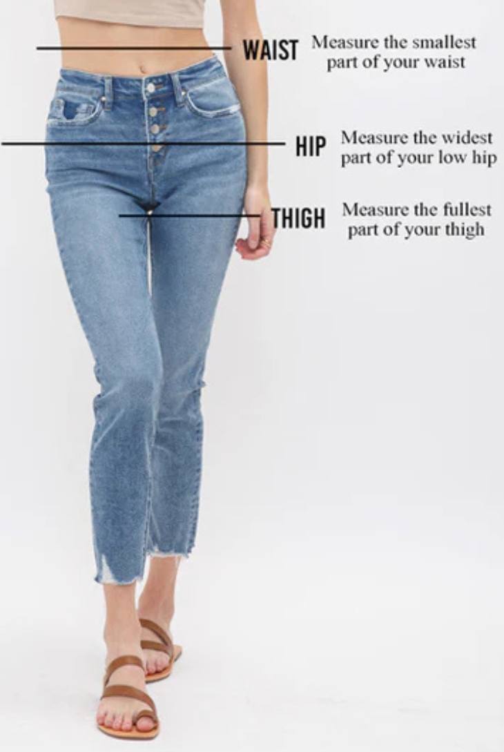 NOTES ON MICA DENIM: Our Mica jeans are crafted with 5% spandex, giving them the perfect amount of stretch and flexibility. We know it might sound a little bold, but we recommend going 2 sizes down from your usual size. Trust us—once you try them on, you'll see the fit is flawless and hugs your body in all the right ways. Embrace the stretch, love the fit!