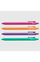 Black Gel Ink. Pens come in clear plastic sleeve with branded paper backing.