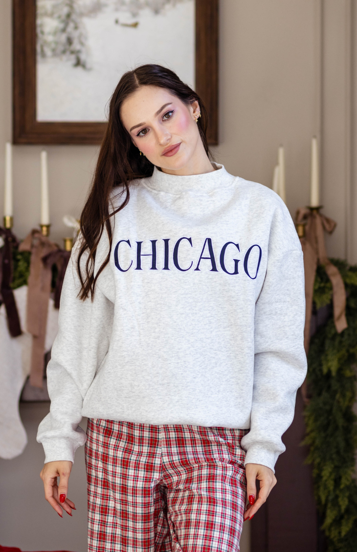 Stay classic and cozy in The Original Chicago Mockneck Sweatshirt. Designed with a relaxed fit, soft fleece interior, and bold Chicago lettering, this everyday essential brings hometown pride to any casual look. The mockneck adds a polished touch while keeping you warm all season long. It also makes the perfect gift for any Chicago local, visitor, or city lover.