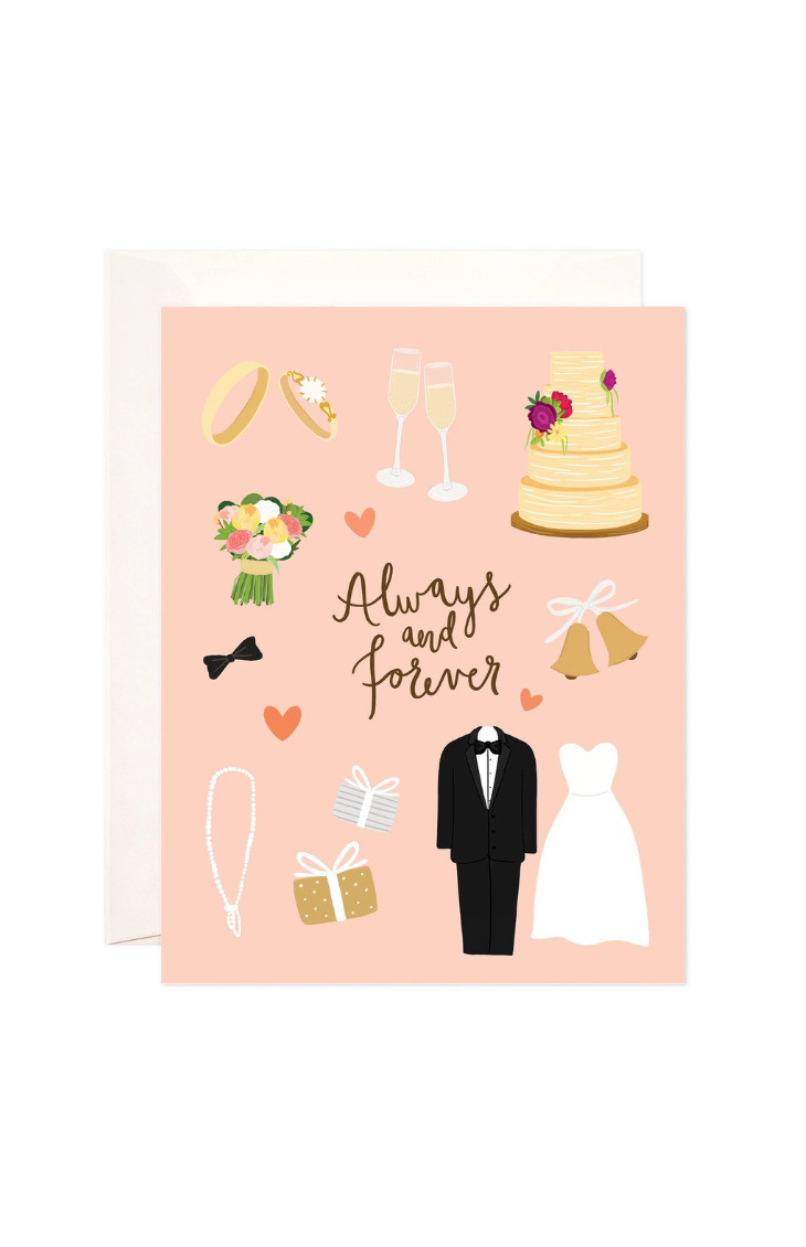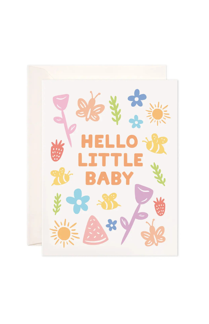 - Paired with coordinating envelope and packaging in a plastic sleeve.