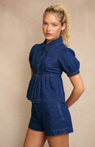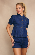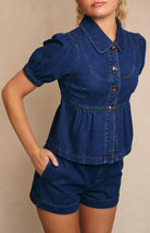 Effortlessly chic and versatile, the Amber Afternoon Set features a puff-sleeve button-up top with a peplum hem paired with matching high-waisted shorts. The structured denim look offers both comfort and style, perfect for warm days or casual outings. Wear together for a coordinated look or mix and match with your wardrobe favorites.