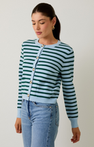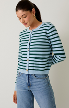 Brighten up your wardrobe with the Hearthlight Cardigan. Featuring bold green and light blue stripes, this button-up cardigan brings a playful twist to a classic silhouette. Designed with front pockets and a polished crew neckline, it’s perfect for layering over your favorite tops or pairing with denim for an effortlessly chic look.