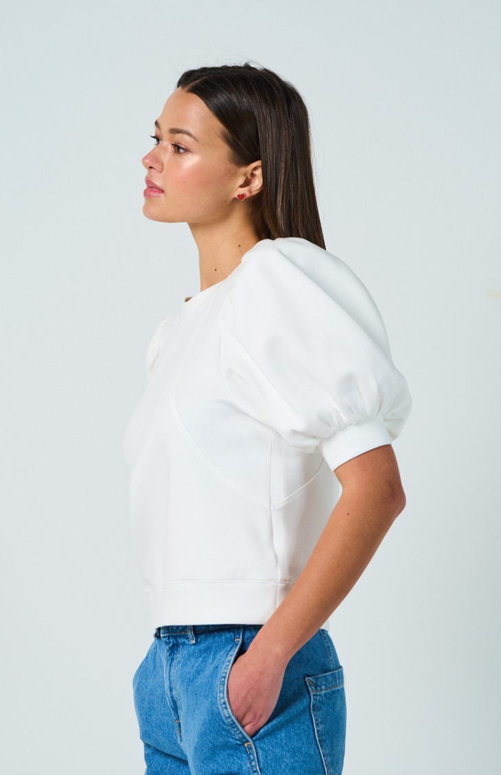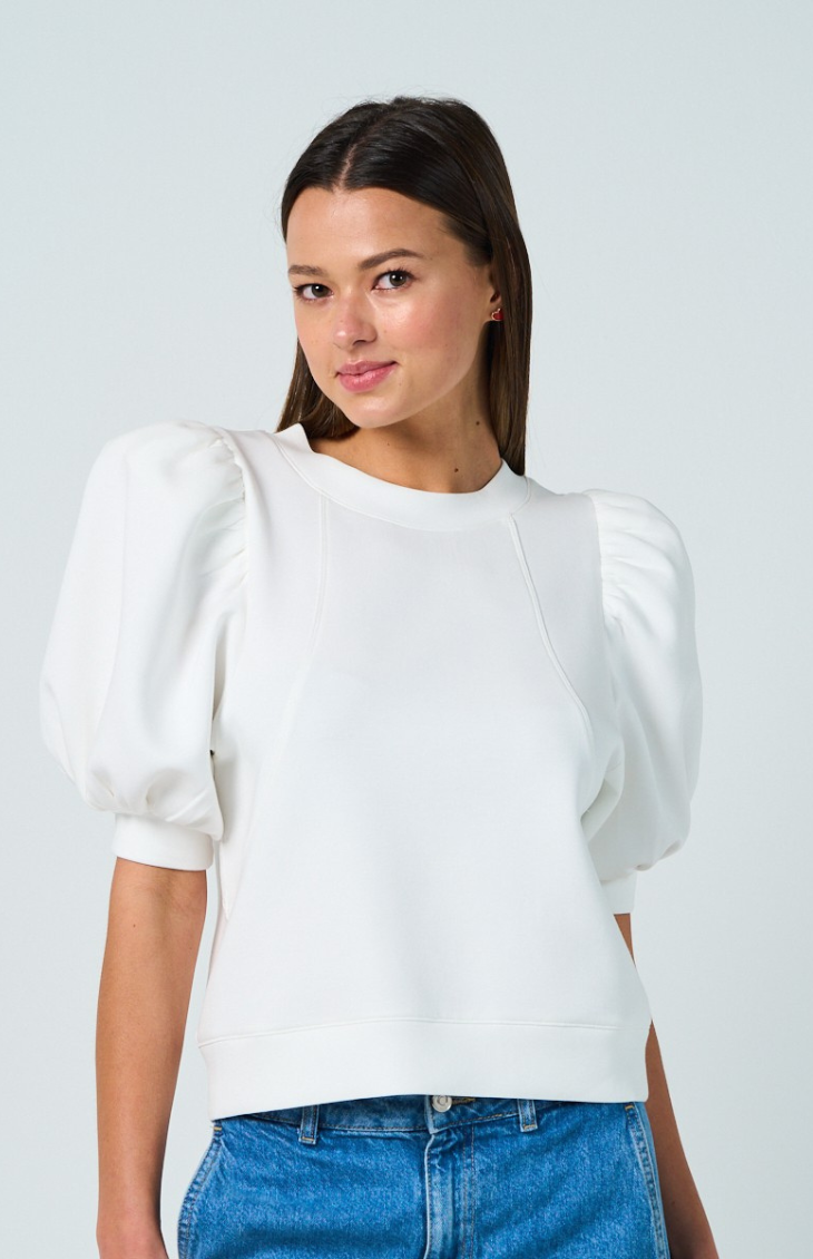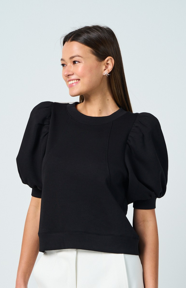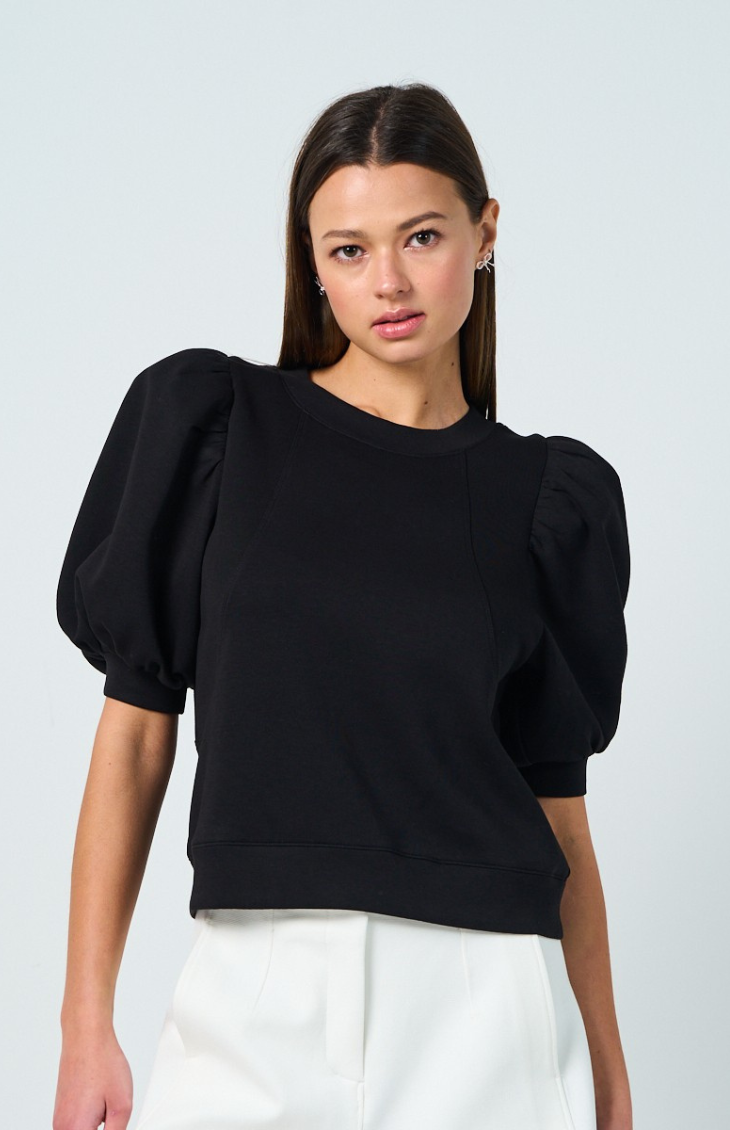 A girly twist on a classic crew. The Galinda Top features dramatic puff sleeves and a soft, structured feel that elevates any casual look. Whether you go with crisp white or classic black, it’s an easy statement piece you’ll want on repeat.