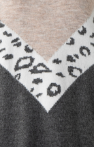Cozy up in style with the Winter Wonder Sweater. This soft knit features a color-block chevron design with a playful animal print accent, blending neutral tones for an effortlessly chic look. The relaxed fit and wide neckline make it perfect for layering on cool-weather days.