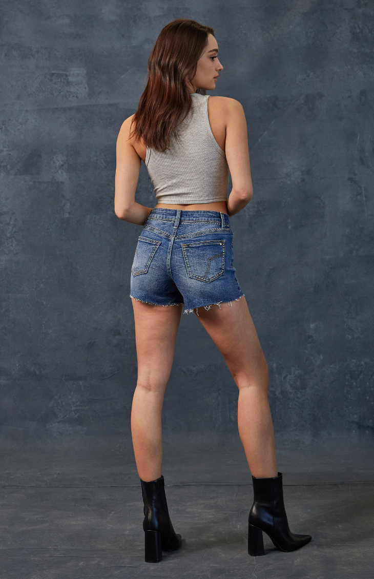 The Becca Studded Shorts are your go-to denim for effortless edge. Designed with a high-rise fit and raw hem, they bring a vintage-inspired vibe with modern comfort. Perfect for pairing with crop tops or oversized sweaters for a cool, laid-back look.