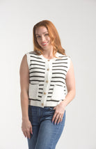 With its gold button detail, chic pockets, and classic black and white stripes, the sophisticated Earth Hues Sweater Vest will immediately elevate your look. Perfect for pairing over a blouse or wearing solo for an effortlessly tasteful outfit.