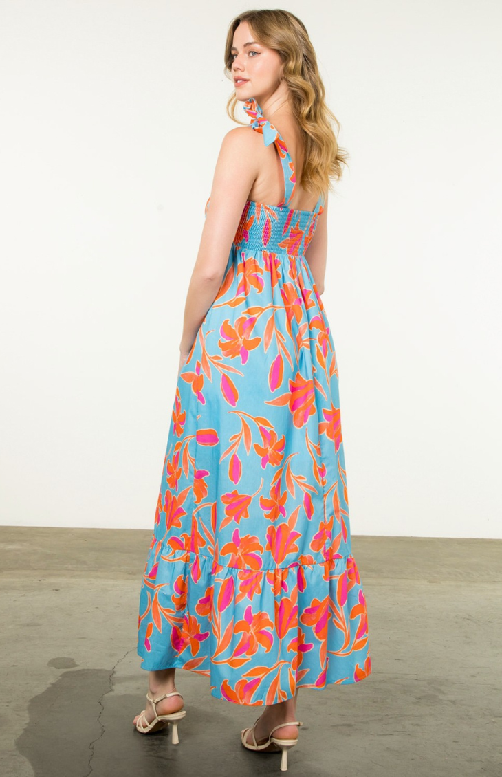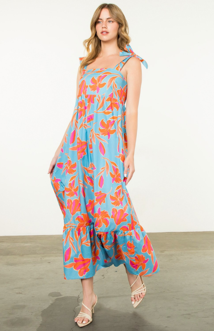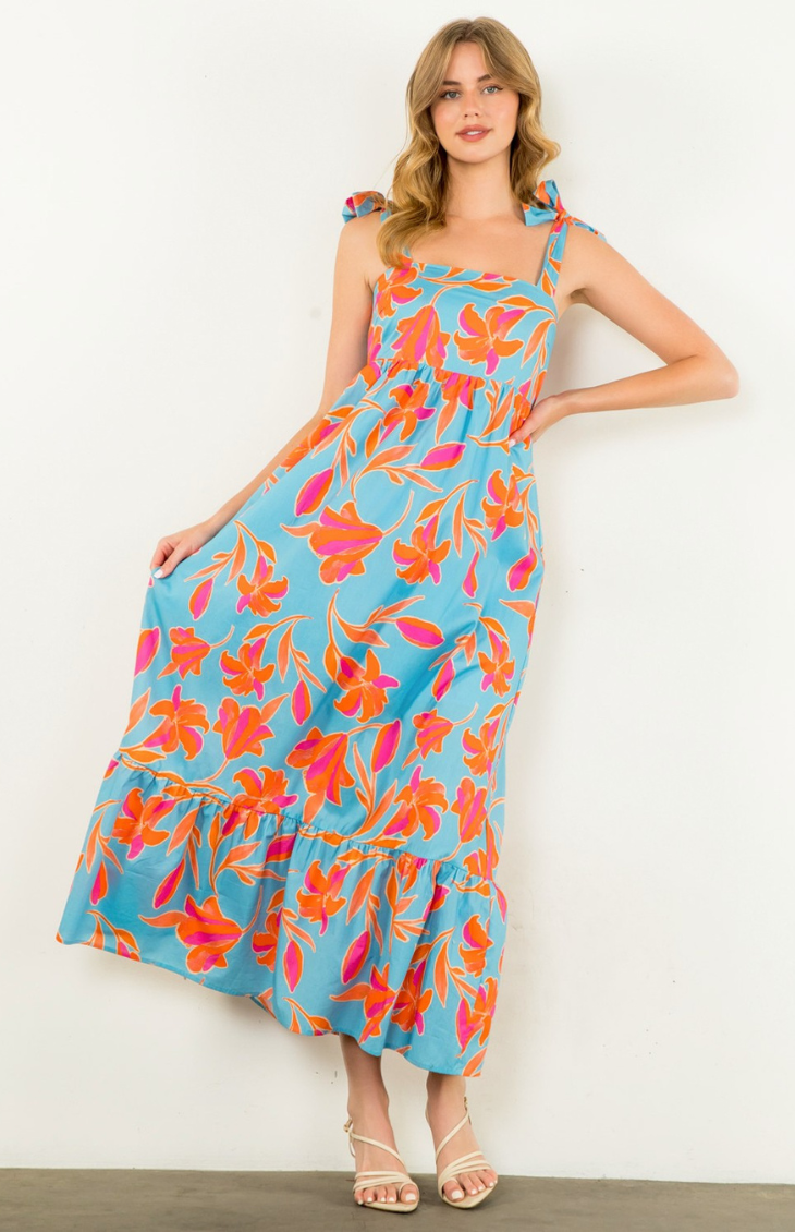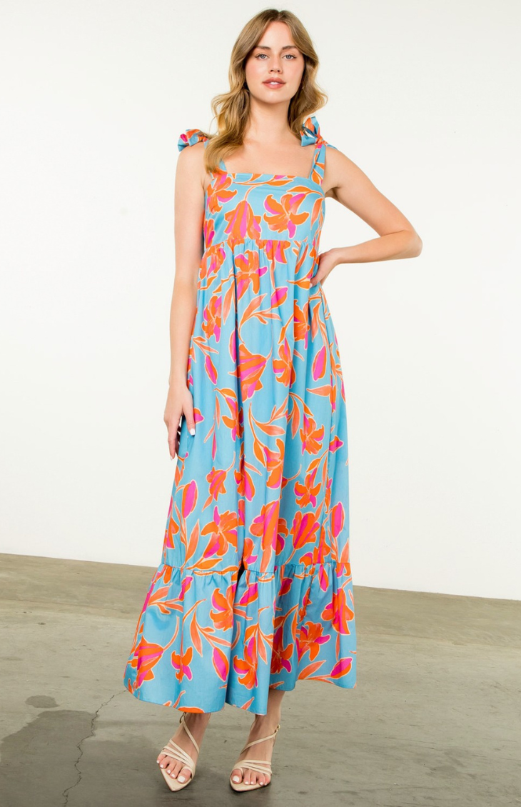 Brighten up your day in the vibrant It Factor Floral Print Maxi Dress. Featuring a square neckline, tie straps, and a flowy tiered skirt, it’s a playful and colorful choice for sunny outings or beachside strolls that can easily be dressed up and down with casual sandals or formal heels.