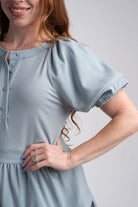 Aiming for elevated style but still want comfort and ease? Featuring subtle ribbed fabric, a half-button front, and gently puffed sleeves, the Meadow Luxe Mini Dress is charming and easy while remaining effortlessly modern. Perfect for day-to-night wear, pair it with sneakers for a relaxed look or dress it up with heeled boots and accessories for a polished vibe