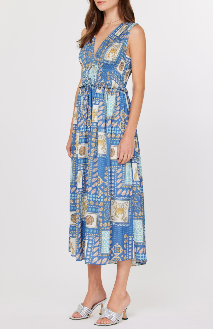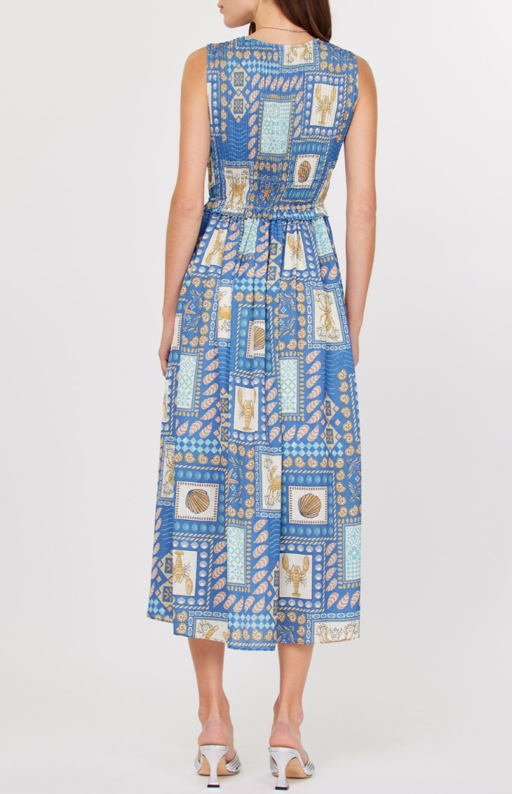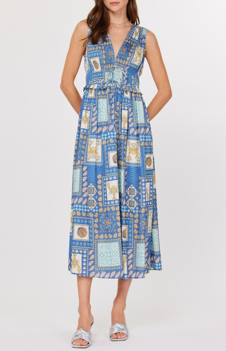 Meet the Melanie Pleated Midi Dress- the perfect beach vacation piece. Featuring its silky fabric, v-neckline, pleated bodice, and flowing midi skirt, this dress is extremely elegant for strolls on the beach and dinners by the water. The bow details at the bodice add an extra girly touch. The print detailed with different sea creatures and shells is what makes it such a fun and unique piece.