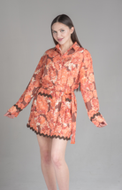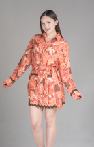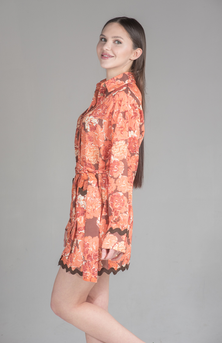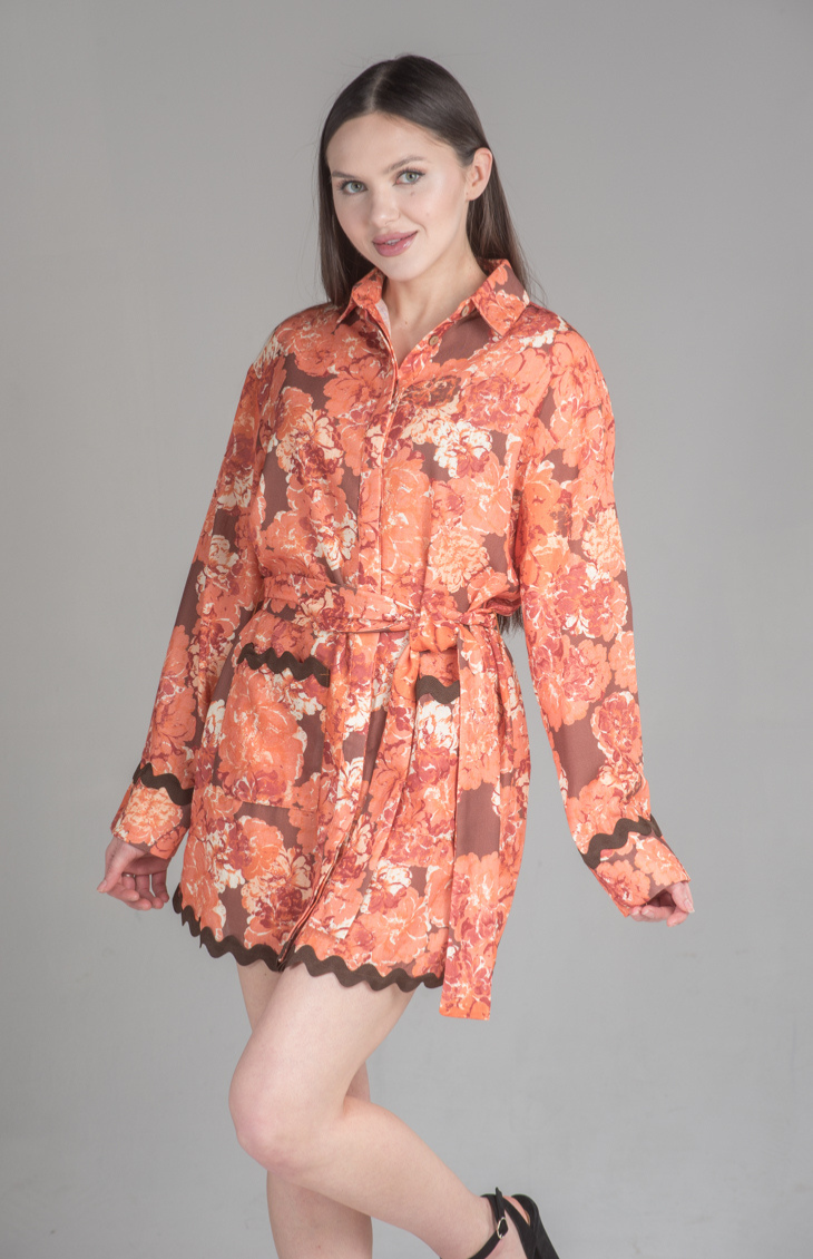 Add a splash of vibrant charm to your wardrobe with the Moonlit Tides Shirt Dress. Featuring a striking floral print, belted waist, and delicate scalloped hem, this dress brings elegance and whimsy to any occasion. Perfect for day-to-night transitions, pair it with ankle boots or heels for a complete look.