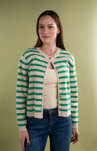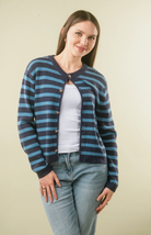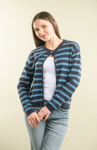 Elevate your everyday style with the Pearl Dusk Cardigan. This classic striped design features a relaxed fit, delicate pearl-inspired buttons, and a soft knit texture perfect for layering. Pair it with your favorite jeans for a timeless look.