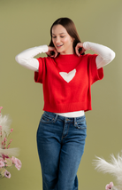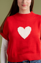 Show your love with the charming Pink Horizon Sweater. Featuring a bold red hue, a contrasting heart design, and cozy ribbed trims, this sleeveless knit is perfect for layering or wearing solo for a sweet statement.