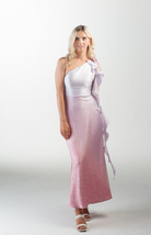Introducing the Roses Are Red Maxi Dress, a stunning pink one-shoulder design featuring elegant ruffle detailing along the side. A detachable pink rose pinned on the shoulder offers a customizable look, while the soft satin fabric creates a subtle ombre effect, transitioning from light lavender to soft pink. With a fitted bodice and flowy, floor-length skirt, this dress is perfect for formal events or special occasions.