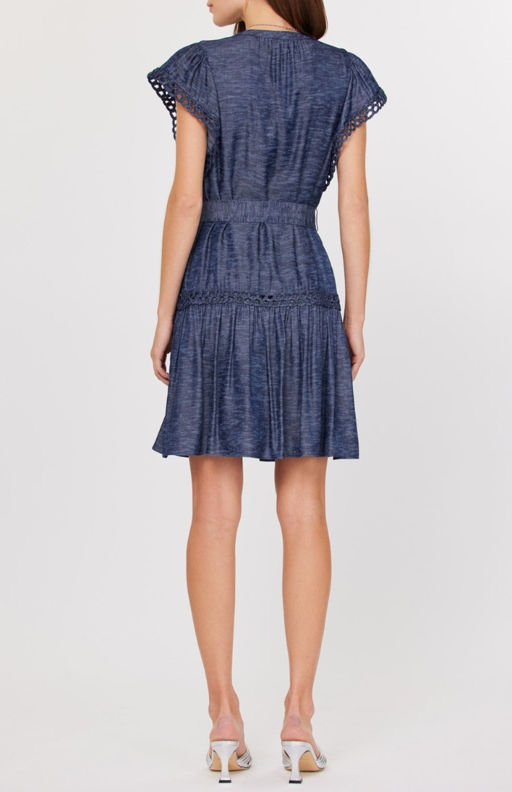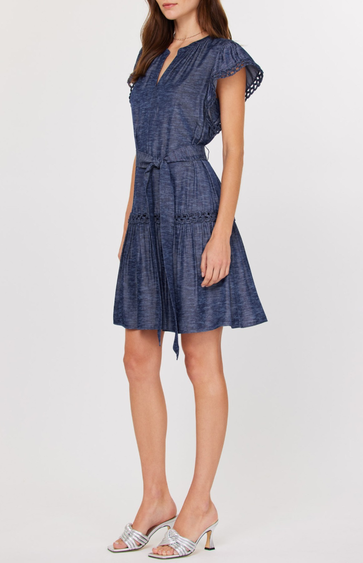 Its all in the details with the Sabrina Mini Dress- featuring its crochet-like circular details around the trim of of the flutter sleeves and at the skirt. The bow-tie belt gives versatility and perfectly cinches the waste. The pleating details at the v-collar and at the mini skirt add extra femininity. This dress is perfect for everything from office, to summer dinners, to vacation days.