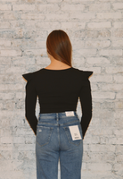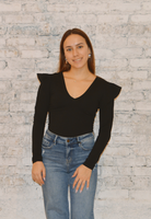 The Susana Monaco A Little Drama Top adds a touch of flair to your wardrobe with its puffy shoulders, creating a dramatic yet stylish look. This top features long sleeves, a flattering v-neck, and is made from super stretchy material, ensuring both comfort and a chic appearance.