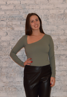 Make a statement with the Susana Monaco Diagonal Neck - Slate, an elevated basic that's perfect for your wardrobe. Its unique diagonal neck design adds a modern twist, while the stretchy material and long sleeves offer comfort and a flattering fit. This piece is ideal for those looking to add a touch of sophistication to their everyday style.