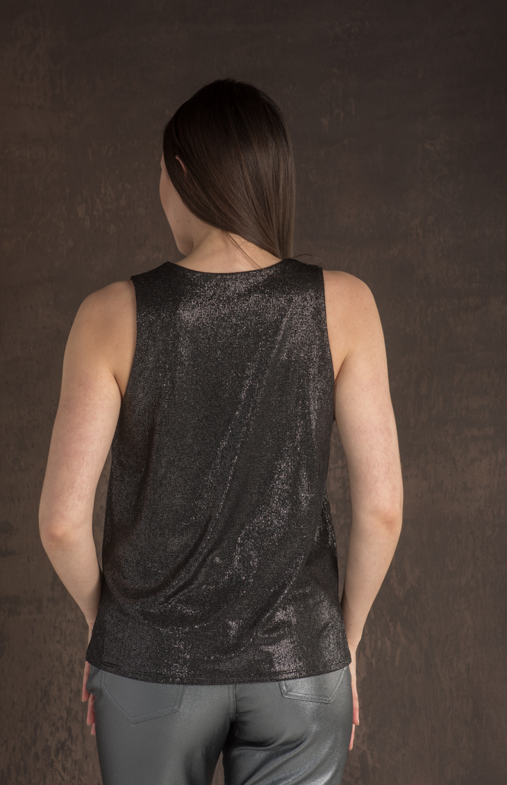 Shine effortlessly in the Veronica M Lurex Tank. Featuring a shimmery fabric with a relaxed silhouette, this tank is perfect for layering or wearing alone for a dazzling holiday look.