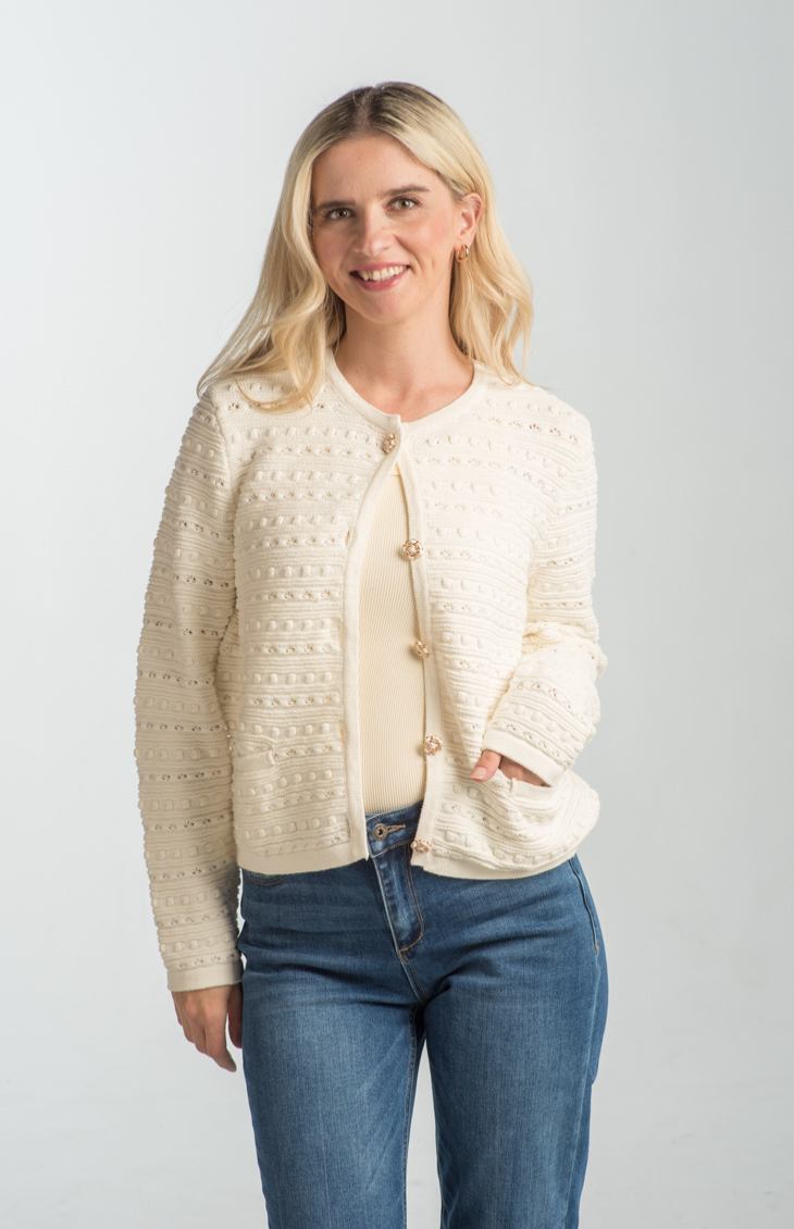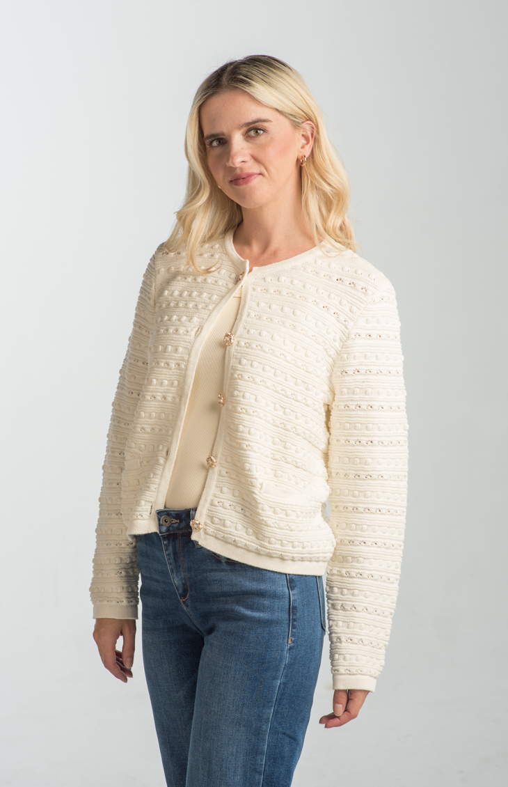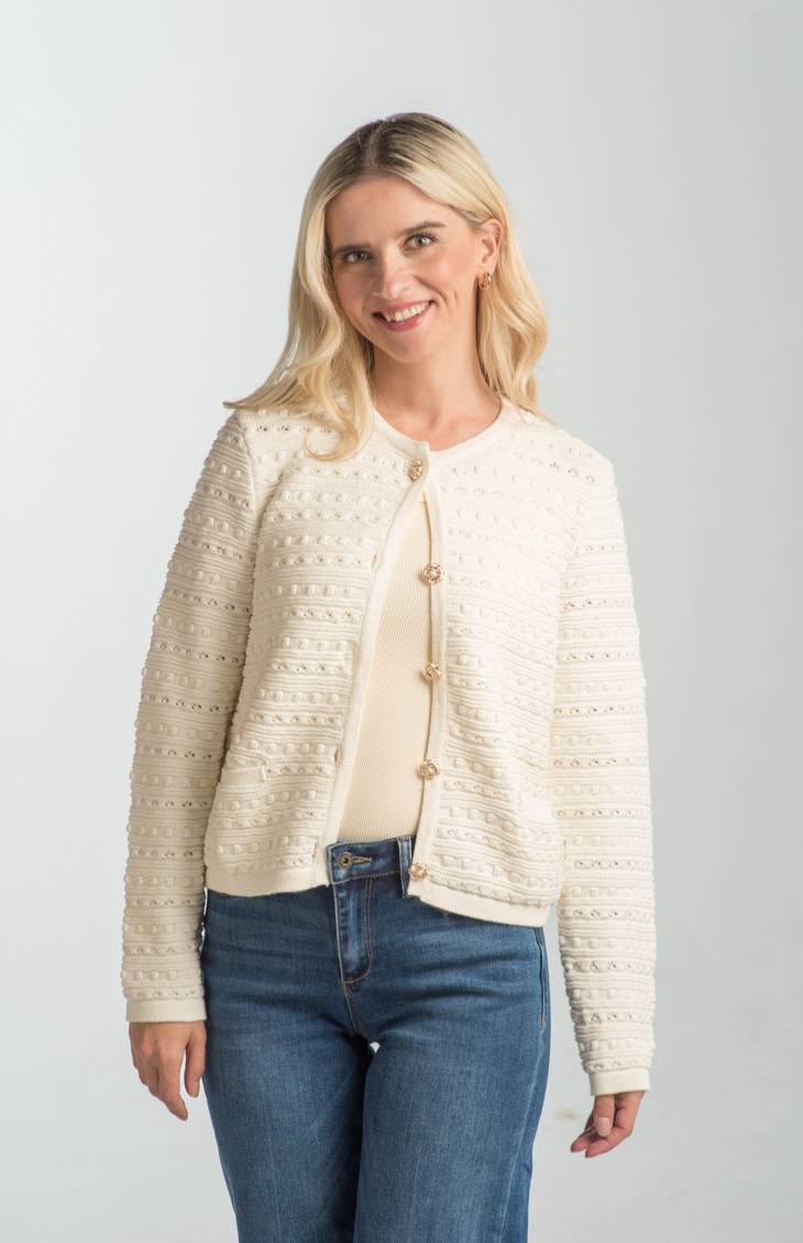The Warm Hugs Cardigan is a timeless layer designed with a textured knit and elegant button detailing for a refined look. This versatile piece effortlessly pairs with everything from denim to skirts, adding a touch of sophistication to your everyday style.